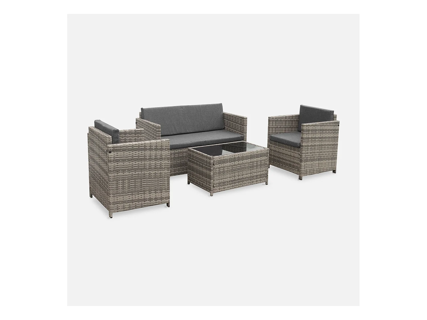 Conjunto de muebles de jardín de resina tejida, 4 plazas varios tonos