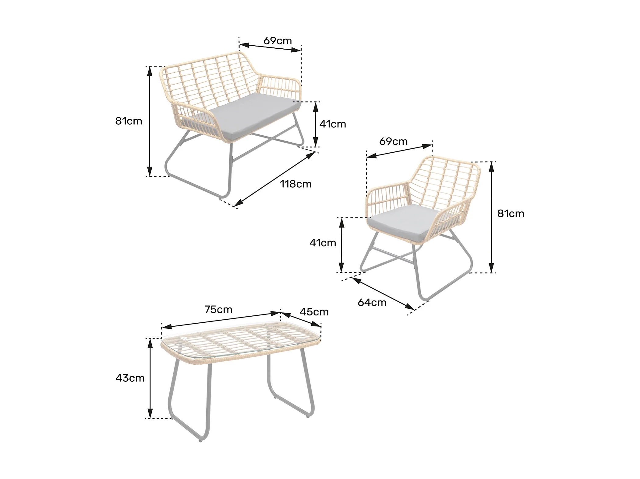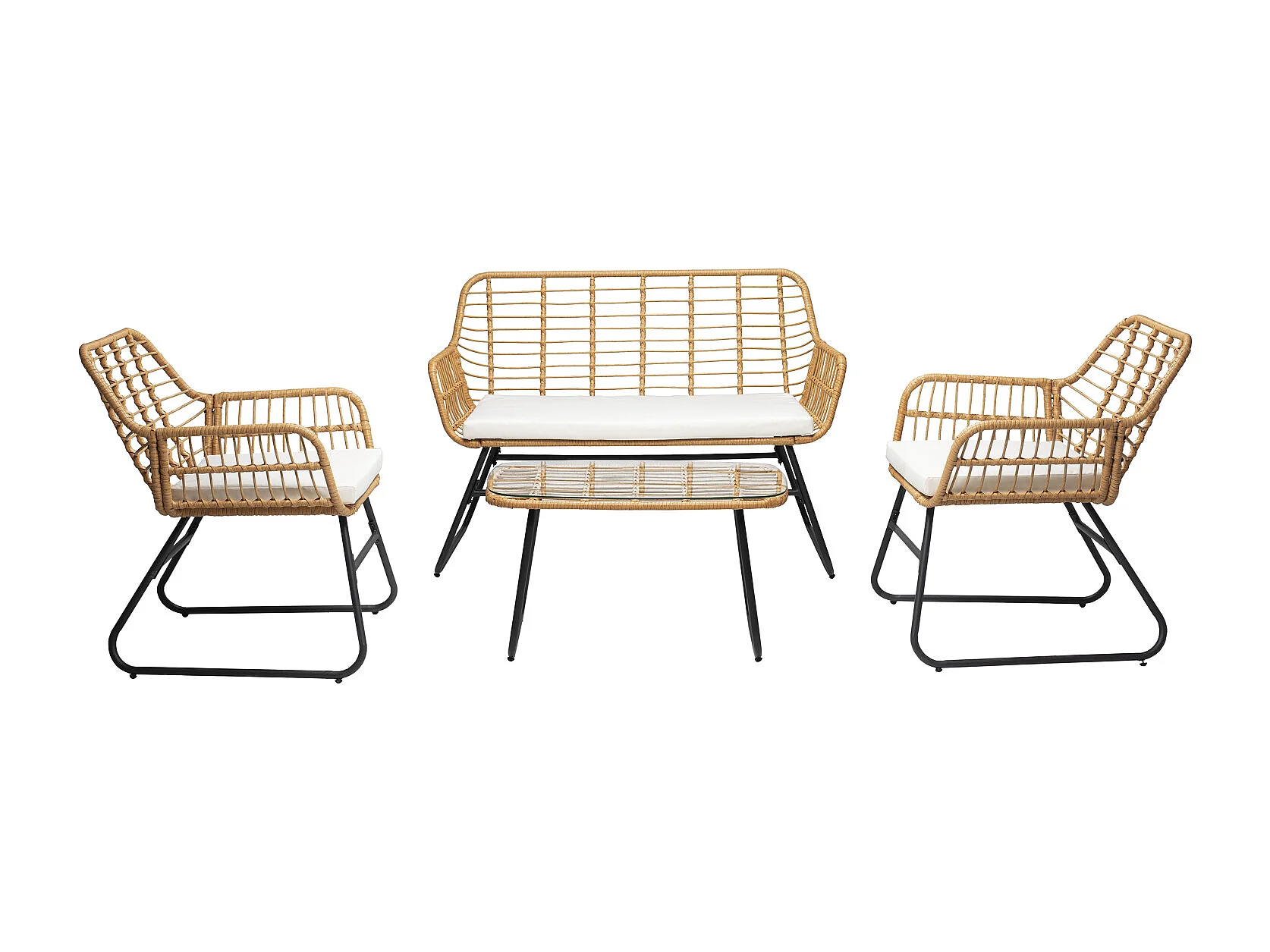 Conjunto de muebles de jardín TIGA de resina tejida 4 plazas cojines crema