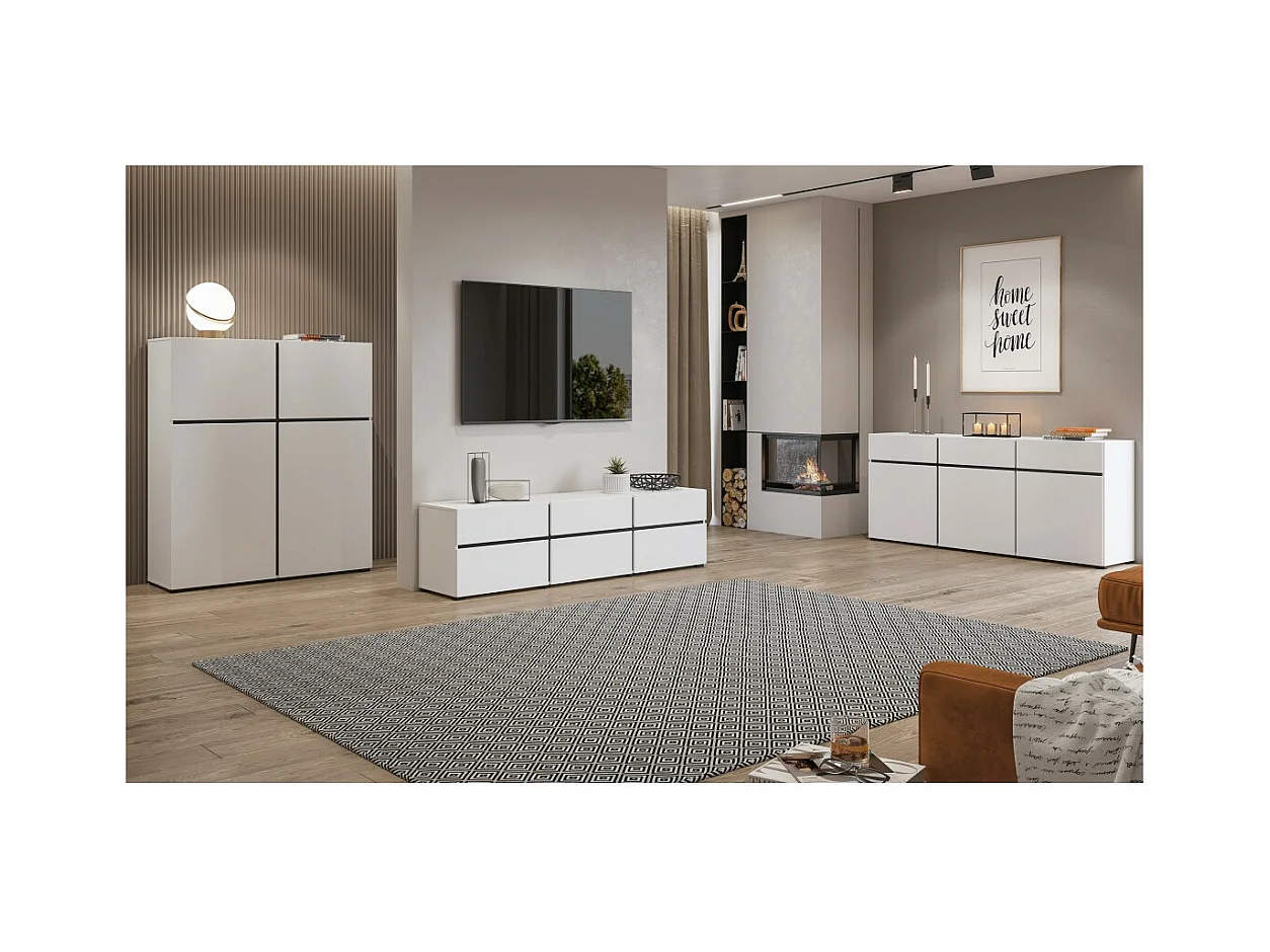 Conjunto de muebles de sala HAVANA – Aparador alto, mueble para TV, aparador bajo – Diseño moderno blanco y negro