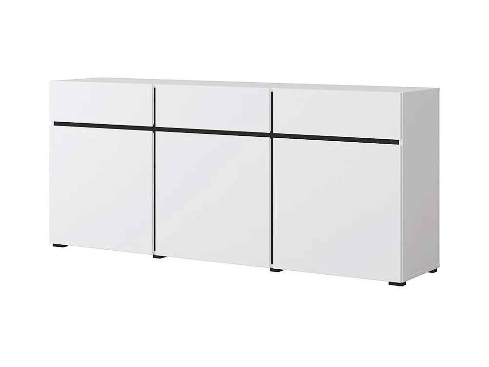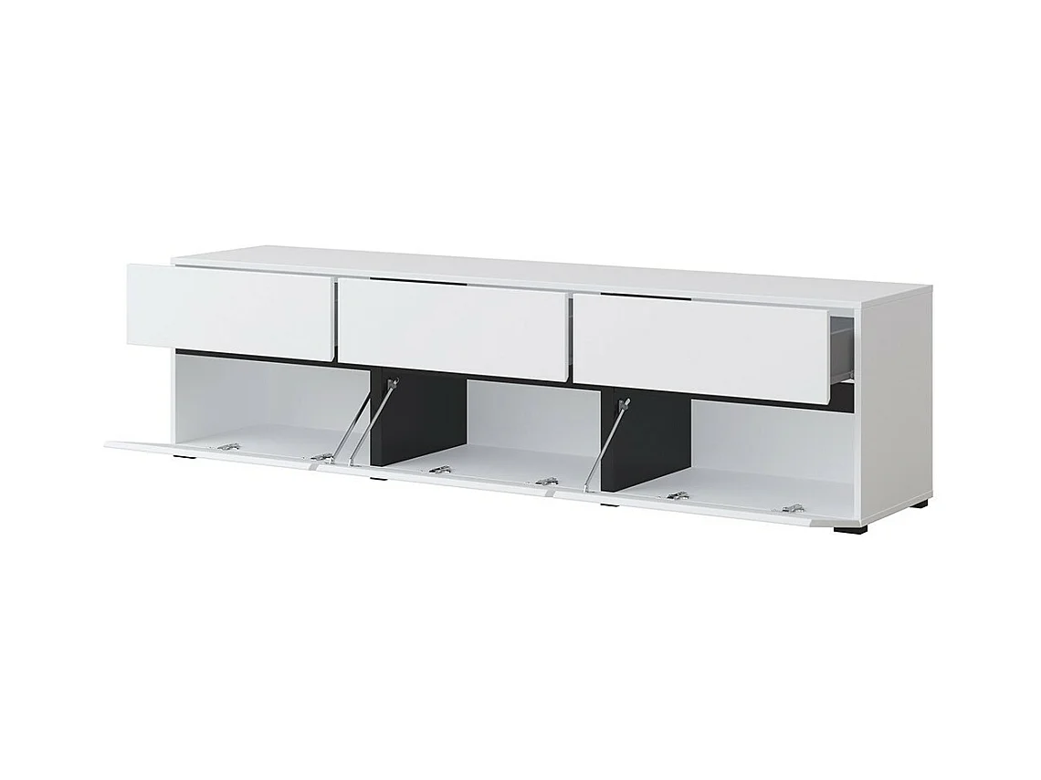 Pack salón SALMA – Mueble para TV, aparador con 2 puertas y 3 cajones y armario en blanco super mate y negro mate