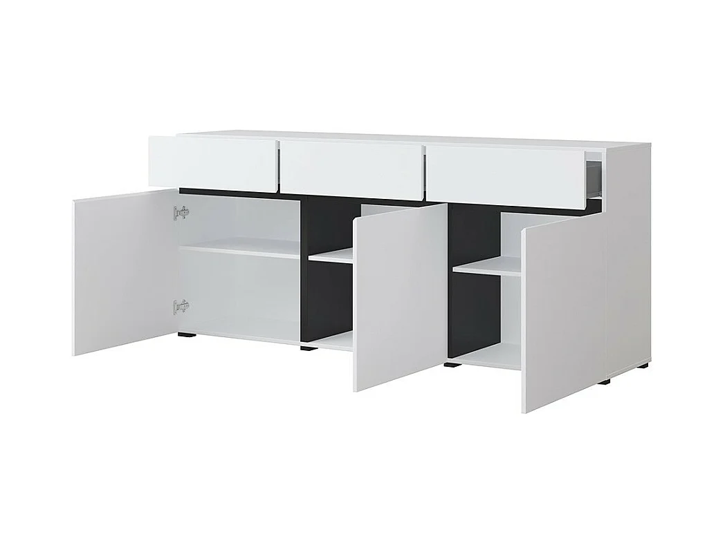 Pack salón SALMA – Buffet XL 4 puertas, armario 2 puertas & buffet 2 puertas y 3 cajones blanco super mate & negro mate