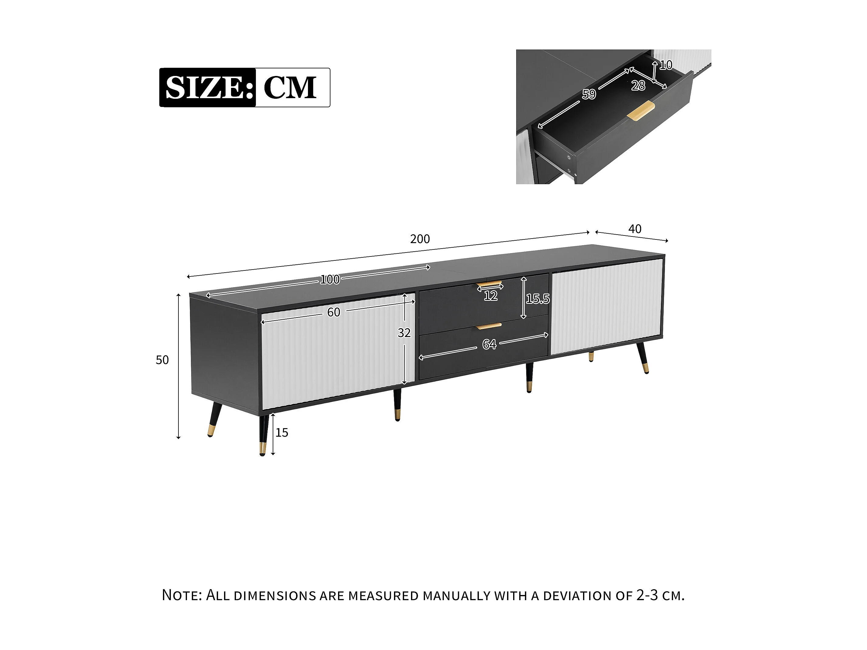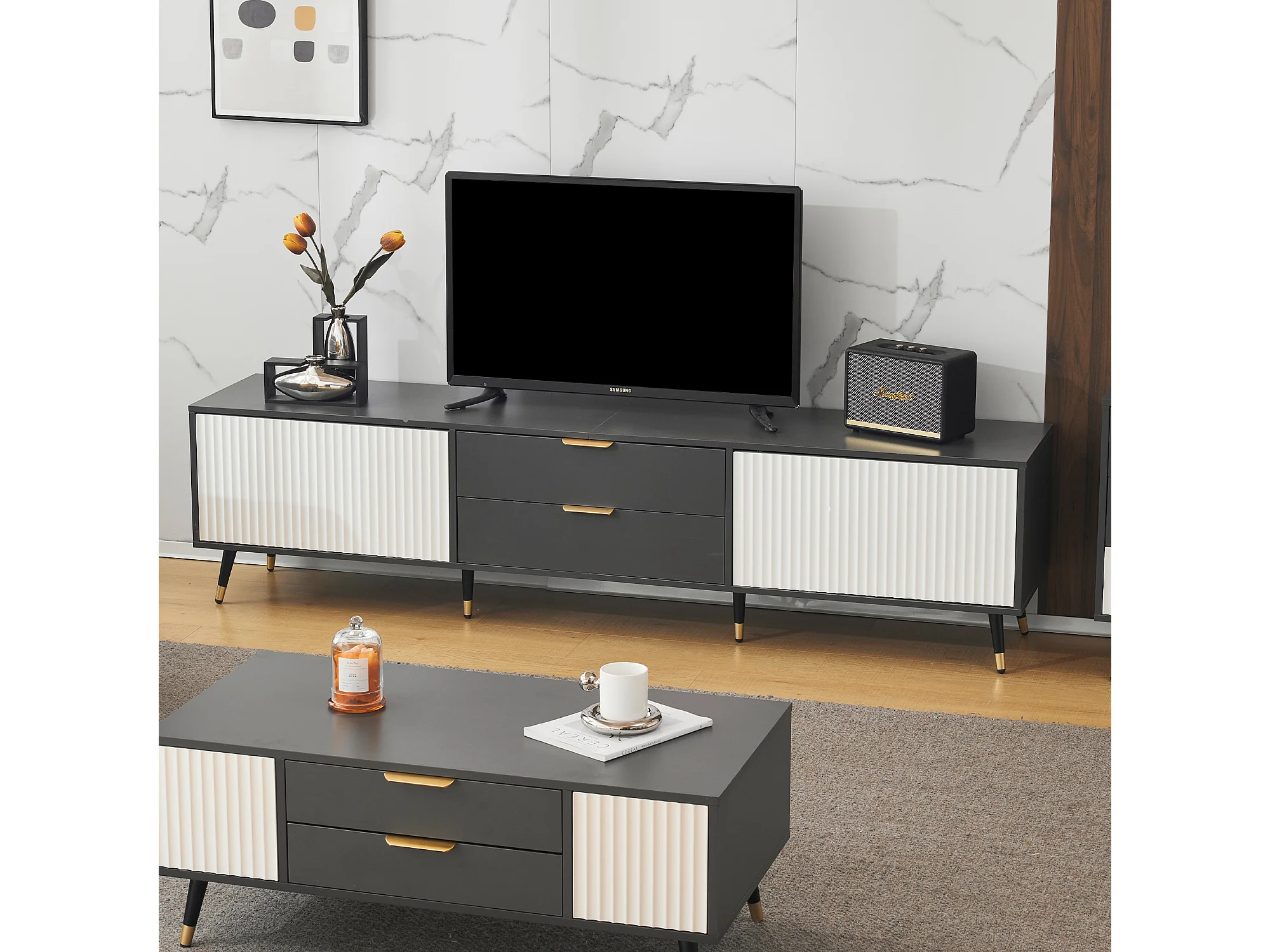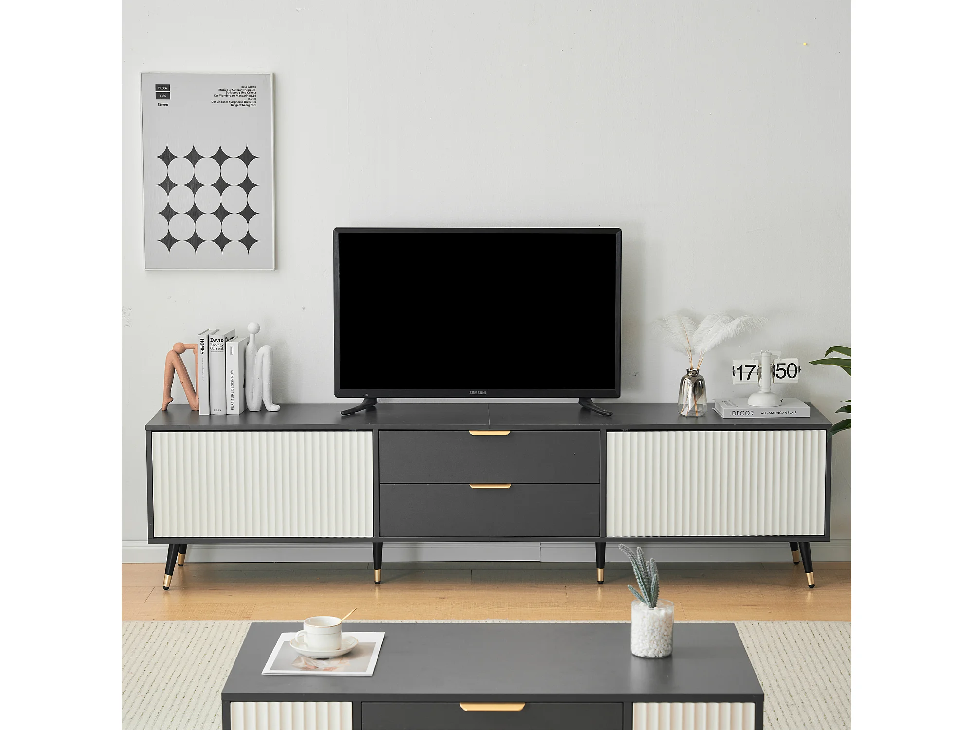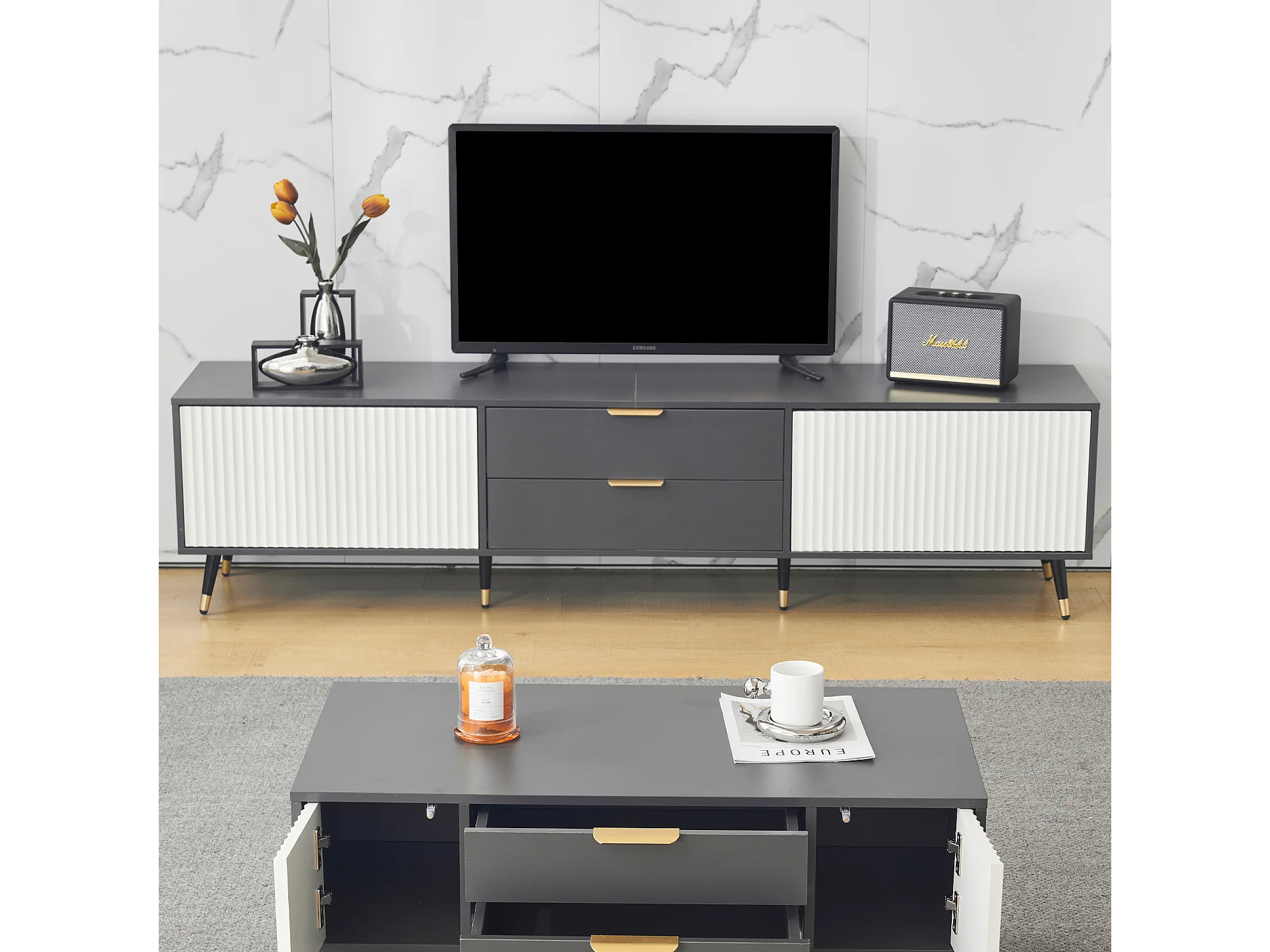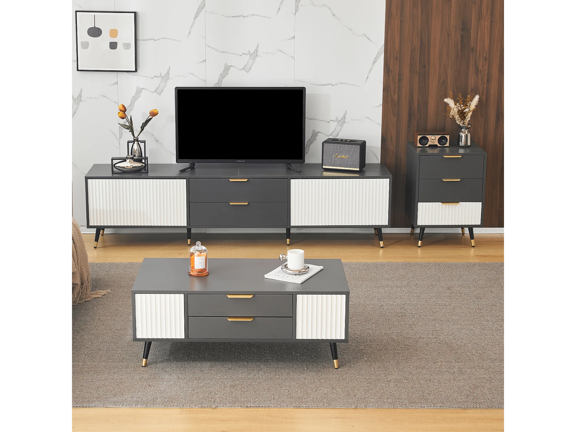 Conjunto de muebles de salón de 3 piezas: mueble de televisión, mesa auxiliar y mesa de centro - Tablero de partículas - Gris y blanco