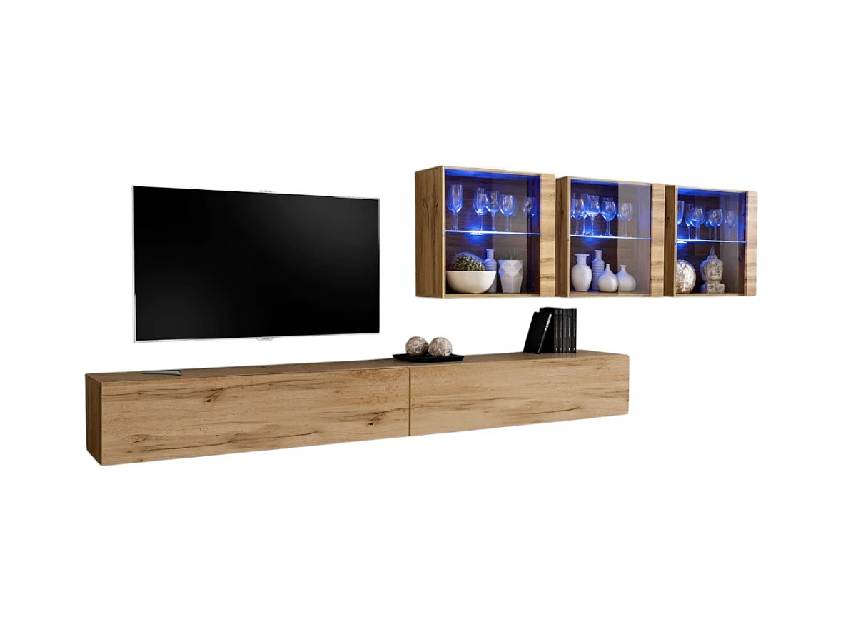 Conjunto de muebles para salón mural SWITCH XVII diseño, color roble Wotan.