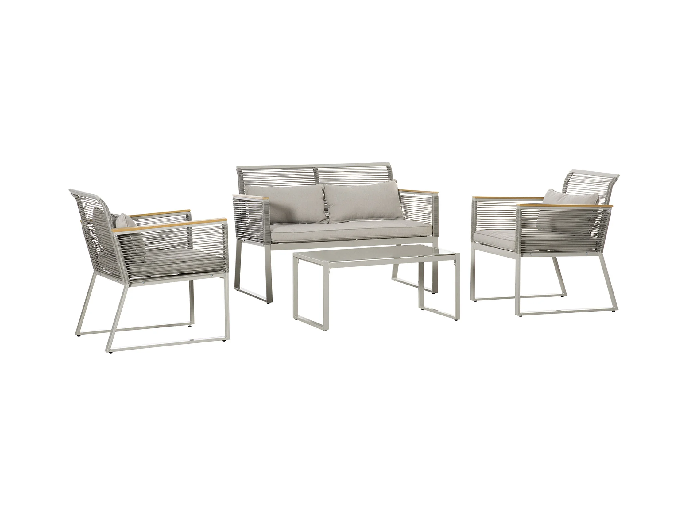 Conjunto de jardín 2 pzas madera teca cojines gris oscuro ES229052