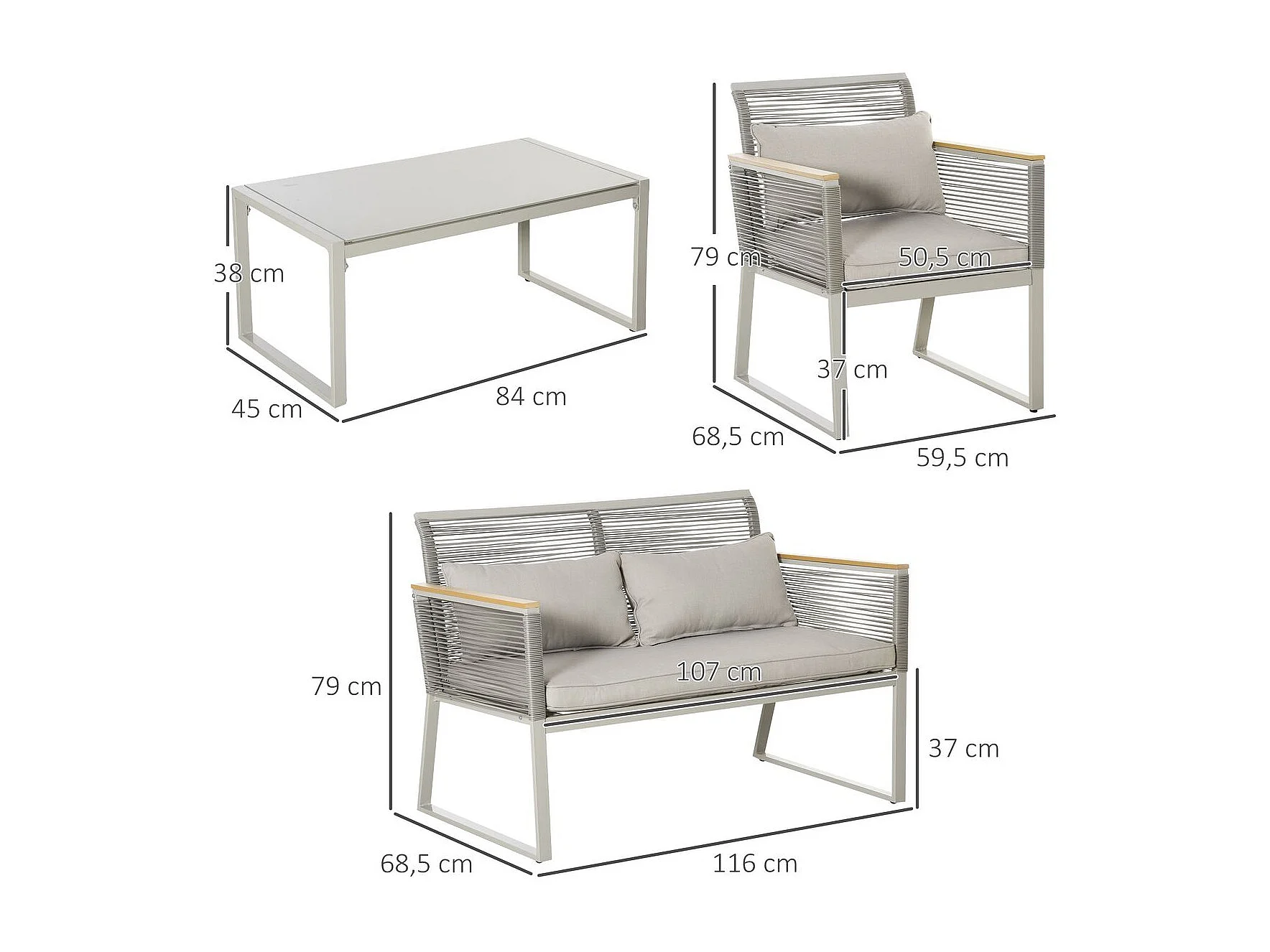 Conjunto de muebles de ratán gris 116x68.5x79 cm Outsunny