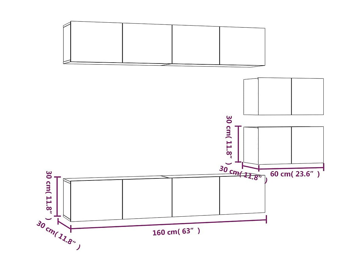 Mueble TV multimedia Estante TV Aparador TV Comedor Salón Dormitorio Colgante 2 piezas 60 x 30 x 30 cm Blanco 02_0029185