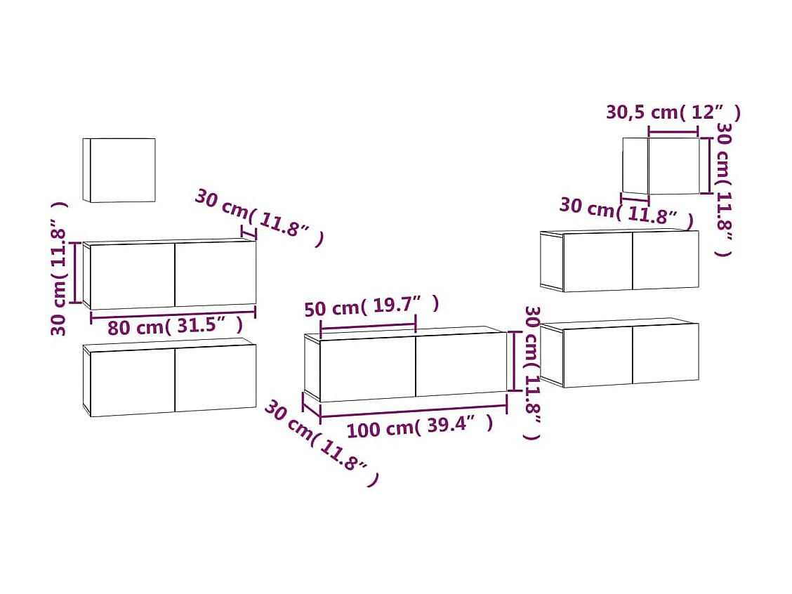 Conjunto de muebles mueble aparador TV televisión salón dormitorio salón 7 piezas blanco madera contrachapada 02_0025145