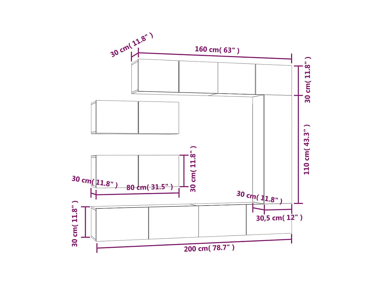 Conjunto de muebles mueble aparador TV televisión salón dormitorio salón 7 piezas roble ahumado madera de ingeniería marrón 02_0025195