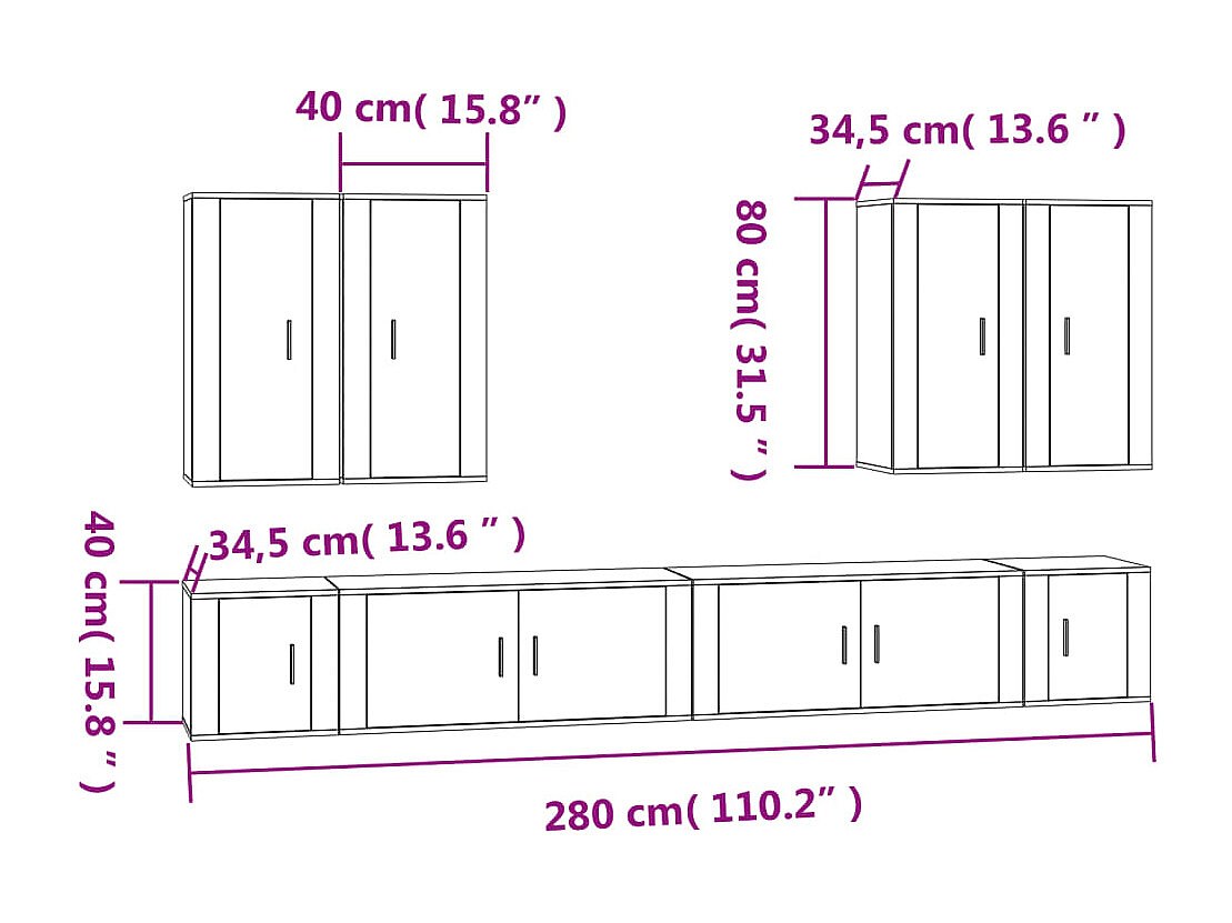 Conjunto de muebles mueble aparador TV televisión salón dormitorio salón 8 piezas madera de ingeniería blanco 02_0025236