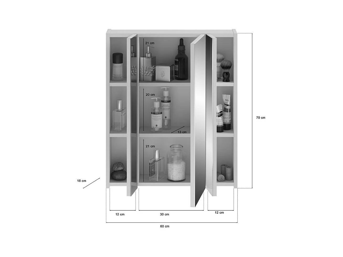 Conjunto de muebles de baño blanco colección BIRD, columnas, mueble bajo lavabo de 80 cm, espejo, sifón y LEDs.