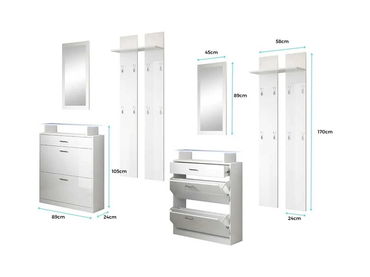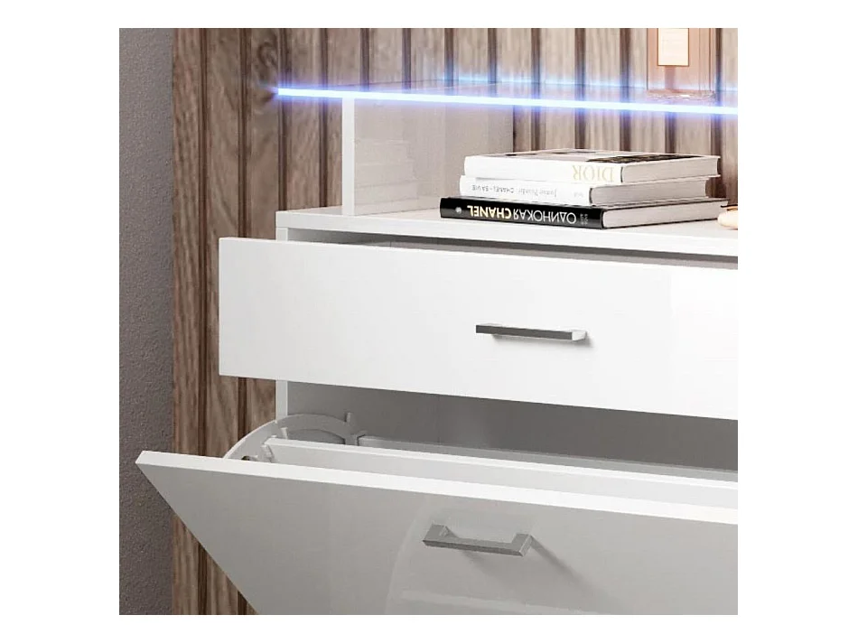 Recibidor zapatero para Entrada Pasillo en Blanco con LED 89x24x105cm Paola