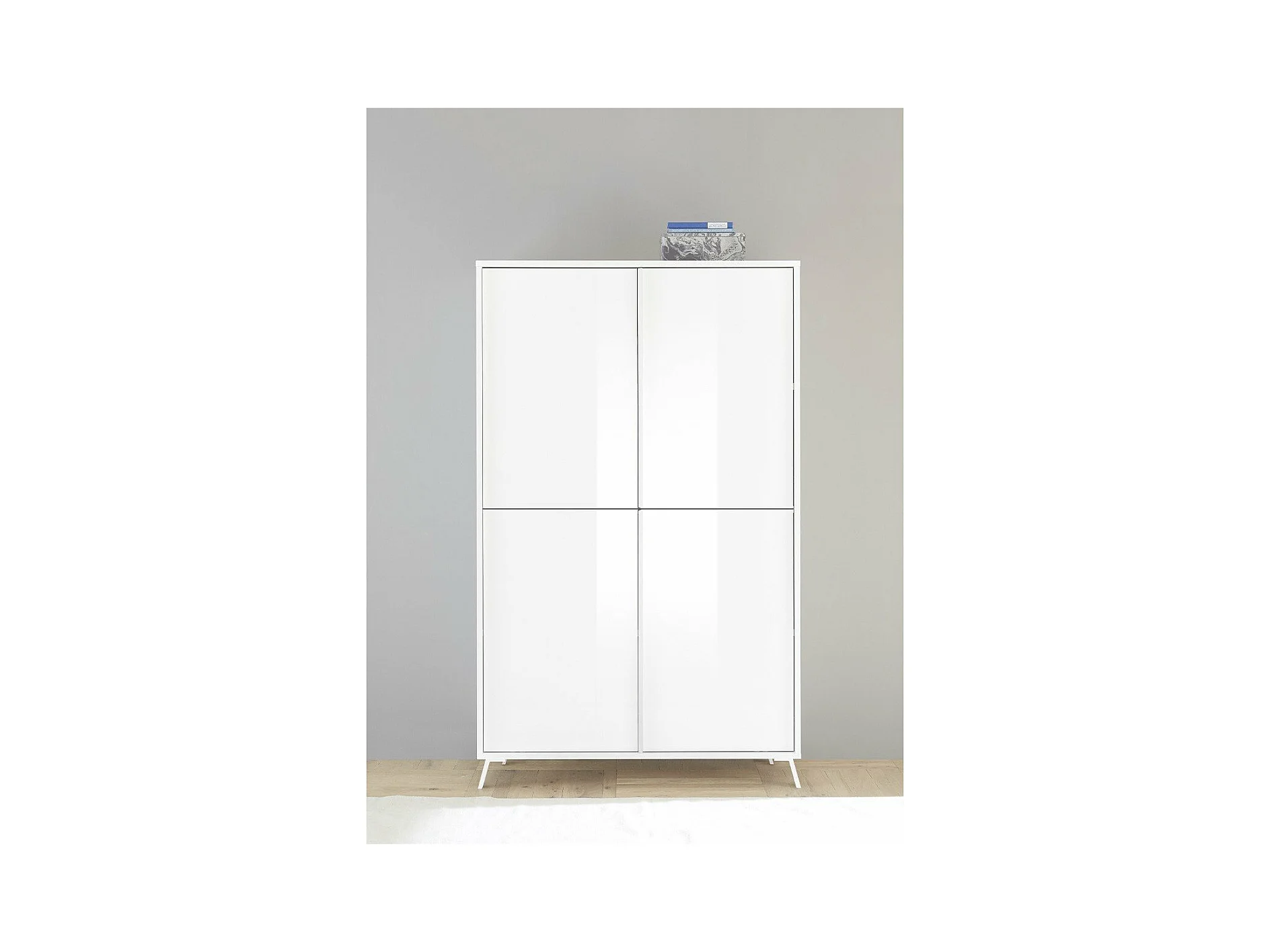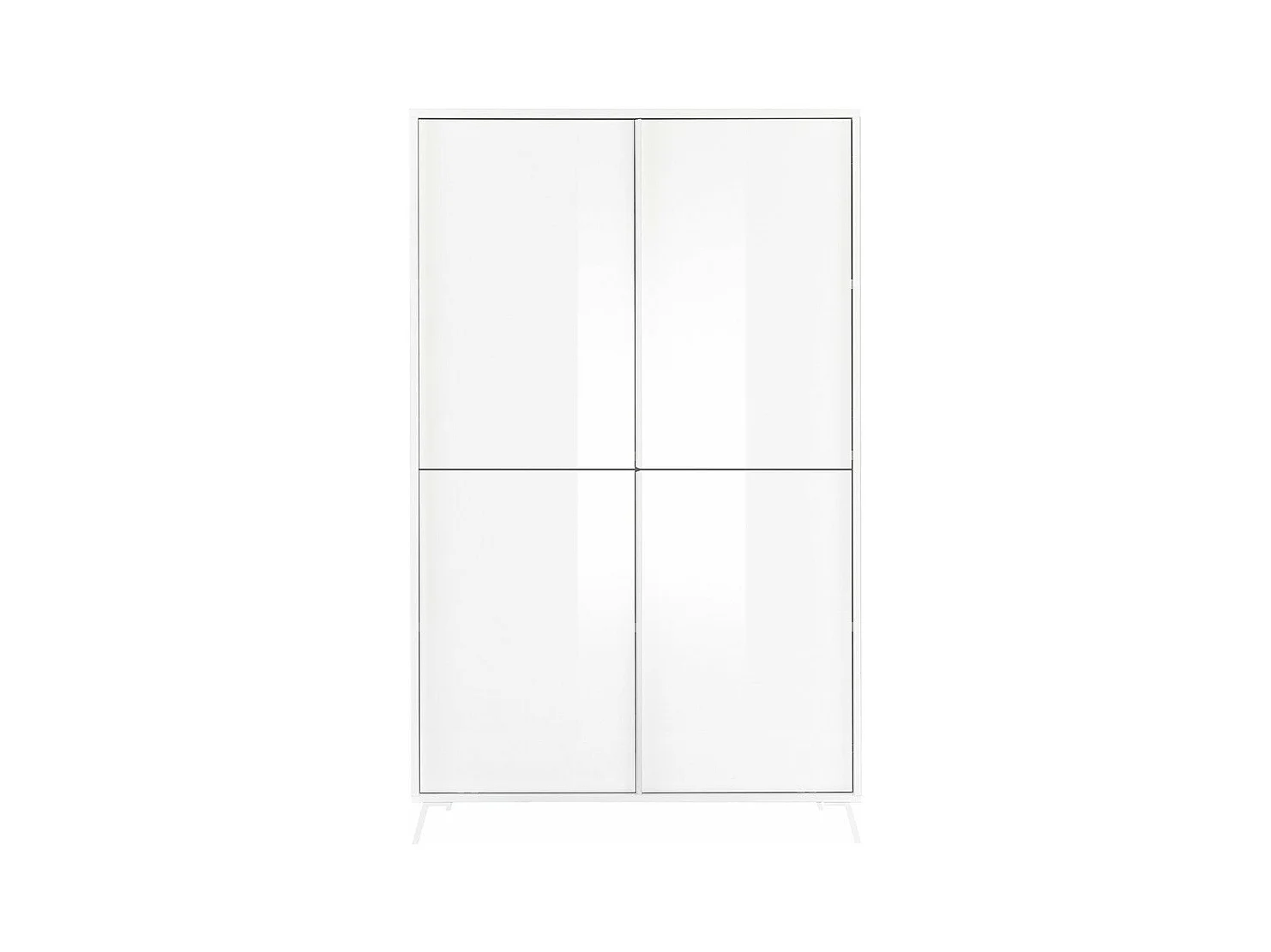 Aparador alto moderno 120 cm – vitrina alta para salón con cristales, cuerpo blanco mate, frentes blanco brillo
