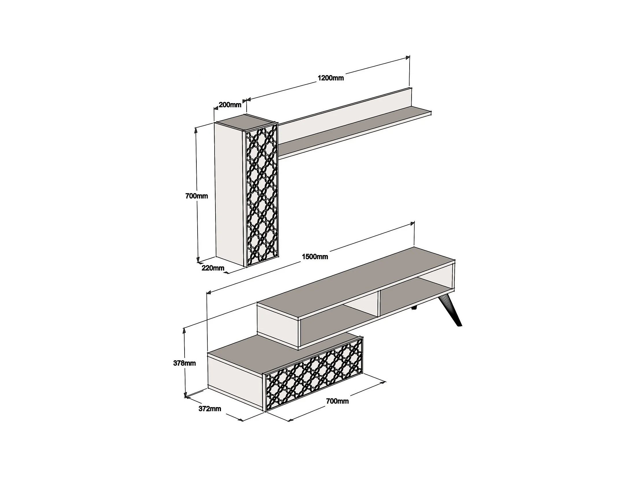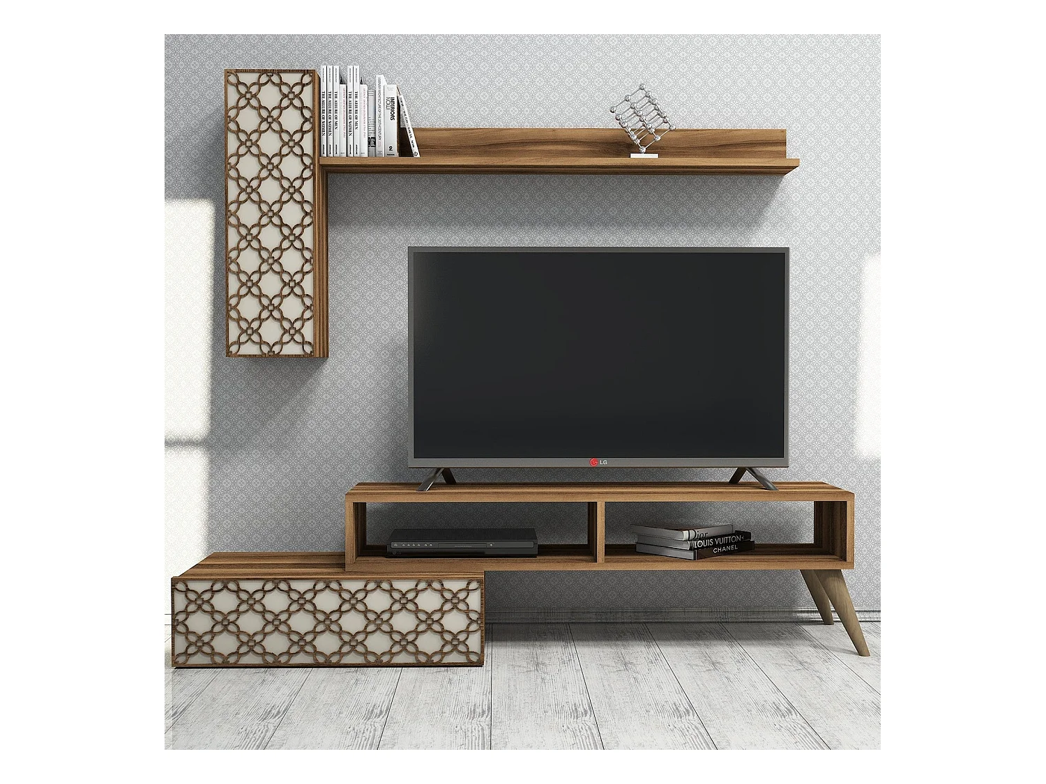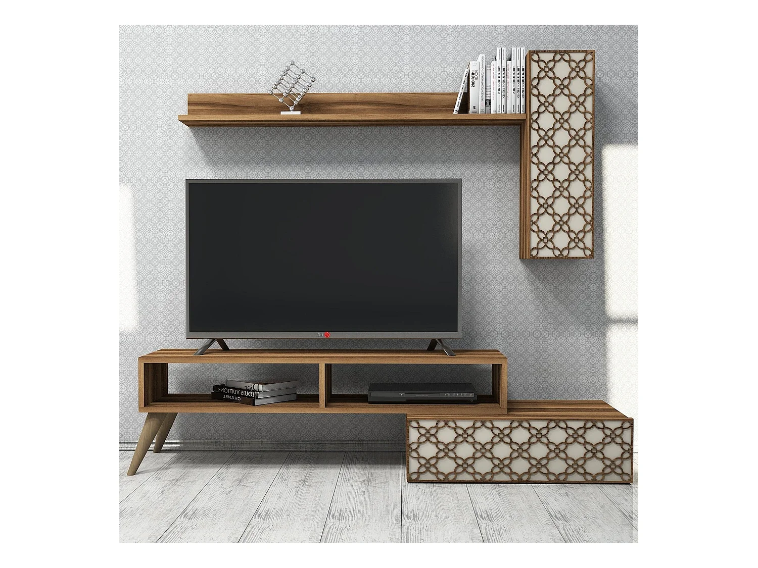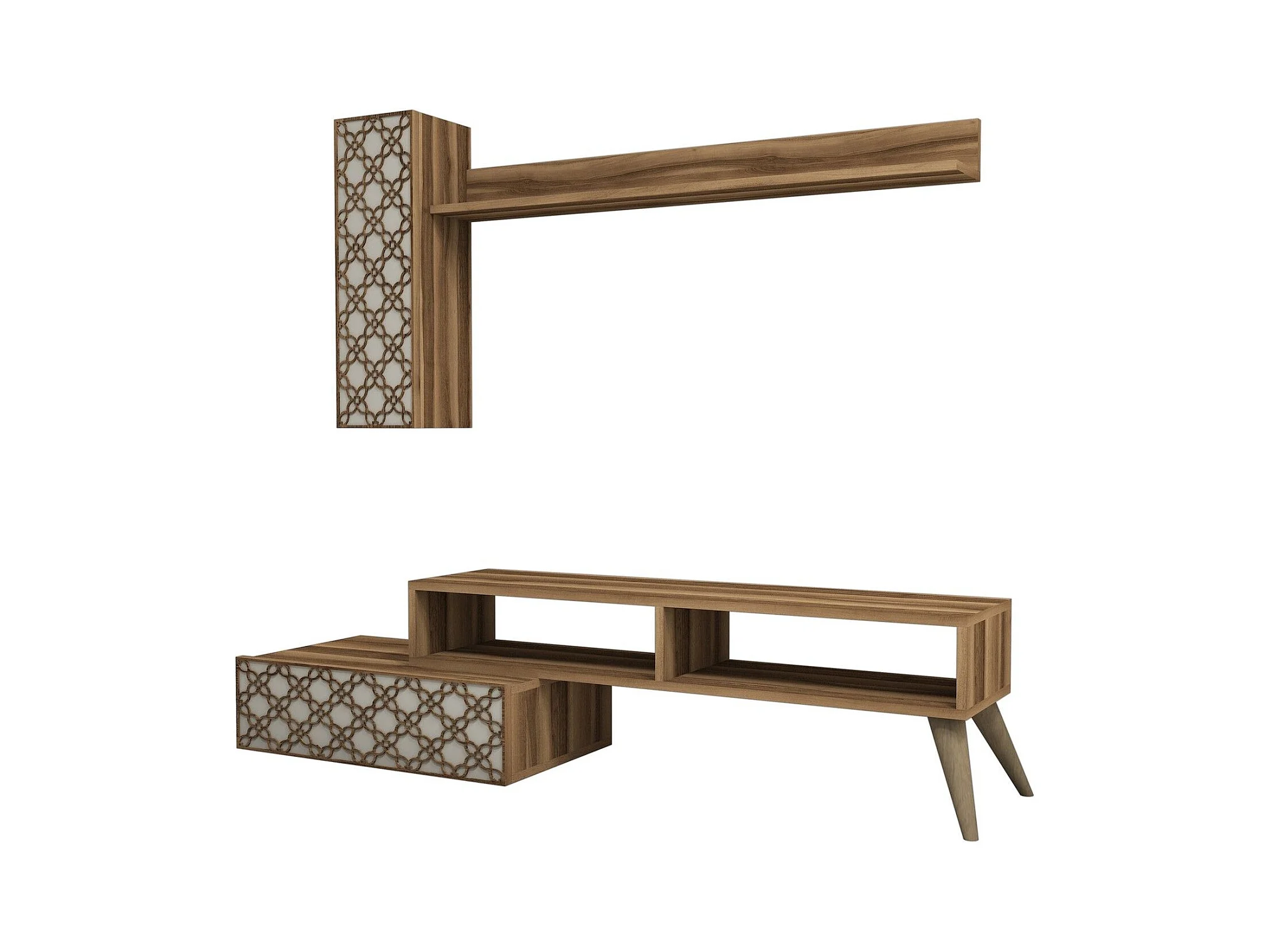 Conjunto de salón Kailua 1561, Nuez|Crema, Partes separadas|Con mesa de TV, 150x37cm