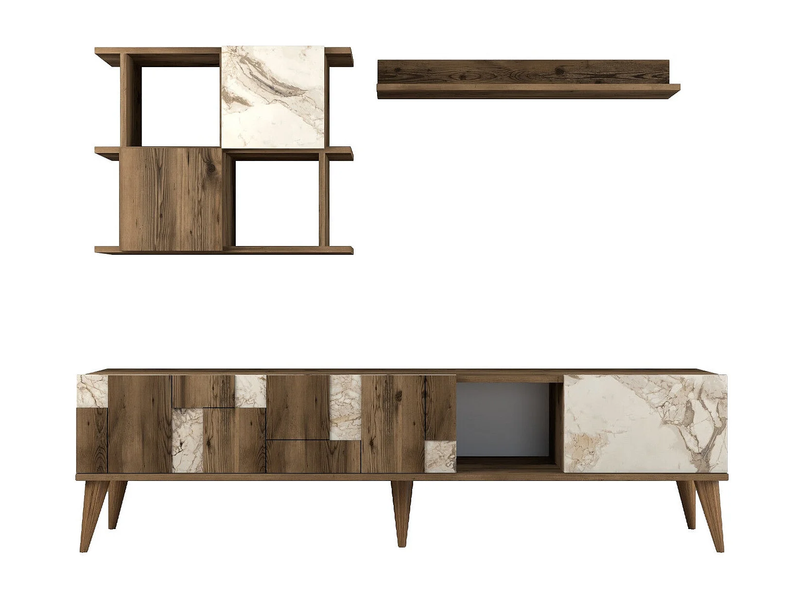 Conjunto de salón Kailua 1566, Mármol blanco|Nuez, Partes separadas|Con mesa de TV, 180cm