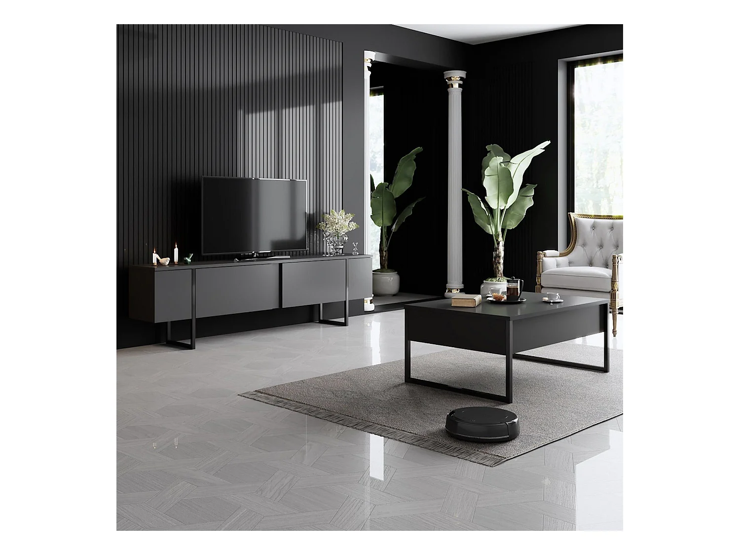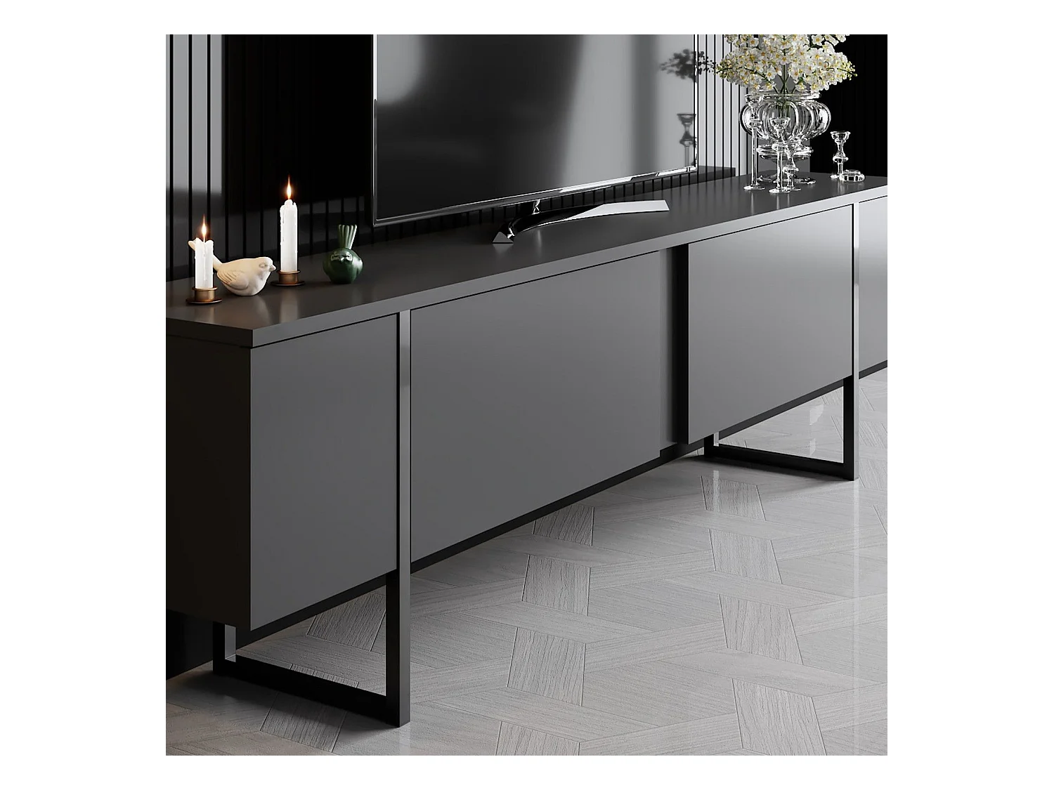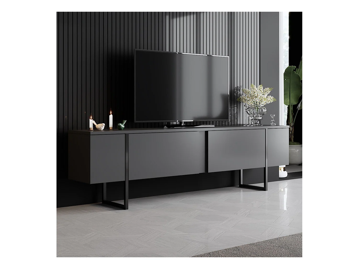 Elegante mueble de TV – 180 x 30 x 50 cm – Antracita y Plata – Tablero de partículas revestido de melamina