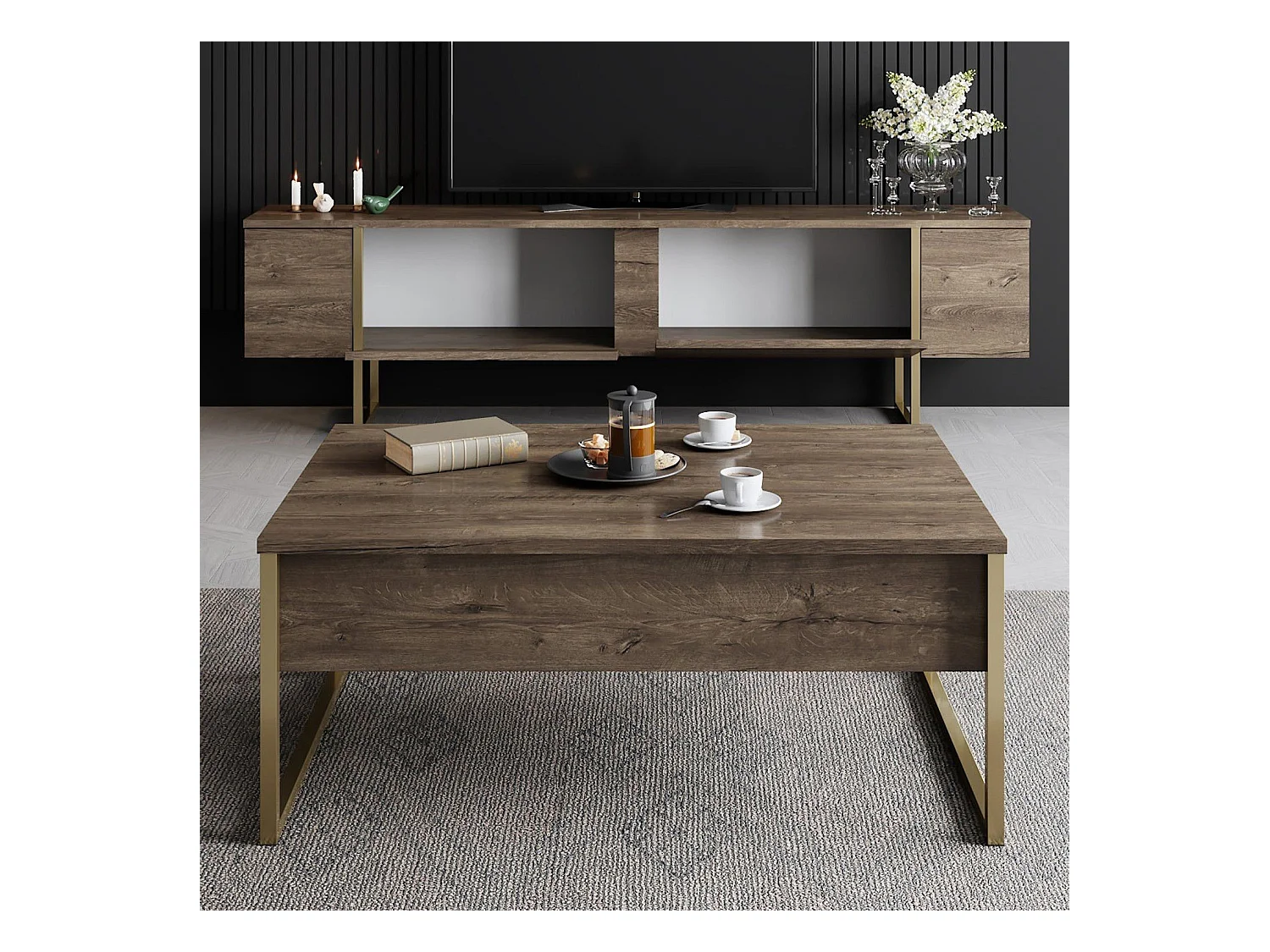 Conjunto de salón Kailua 1590, Nogal, Partes separadas|Con mesa de TV, 160x35cm