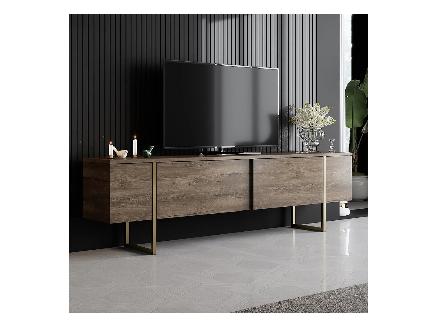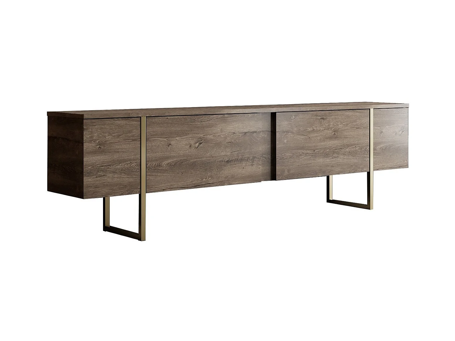 Mueble TV de nogal oscuro con almacenaje y 2 puertas correderas 180 cm EPIC