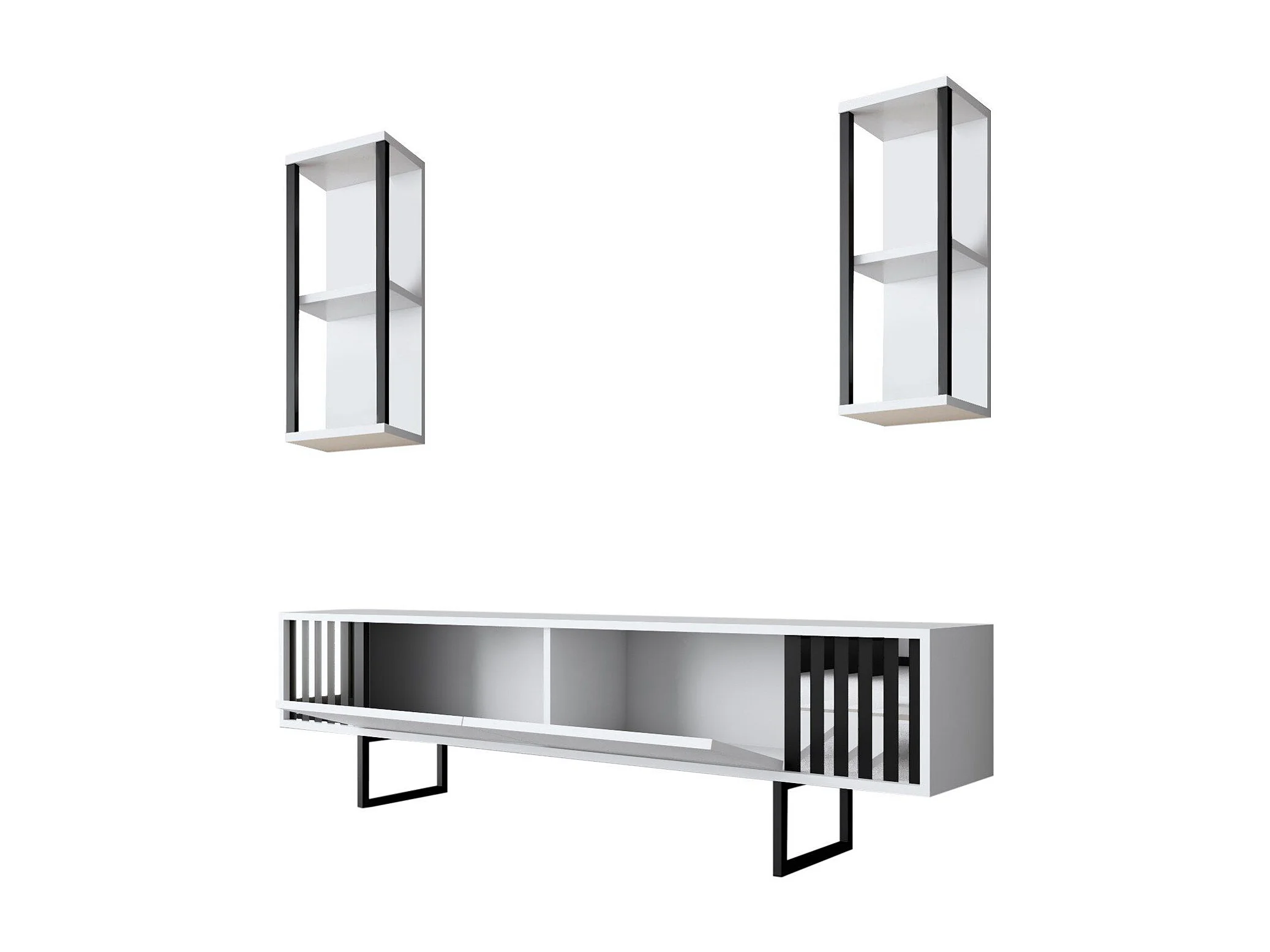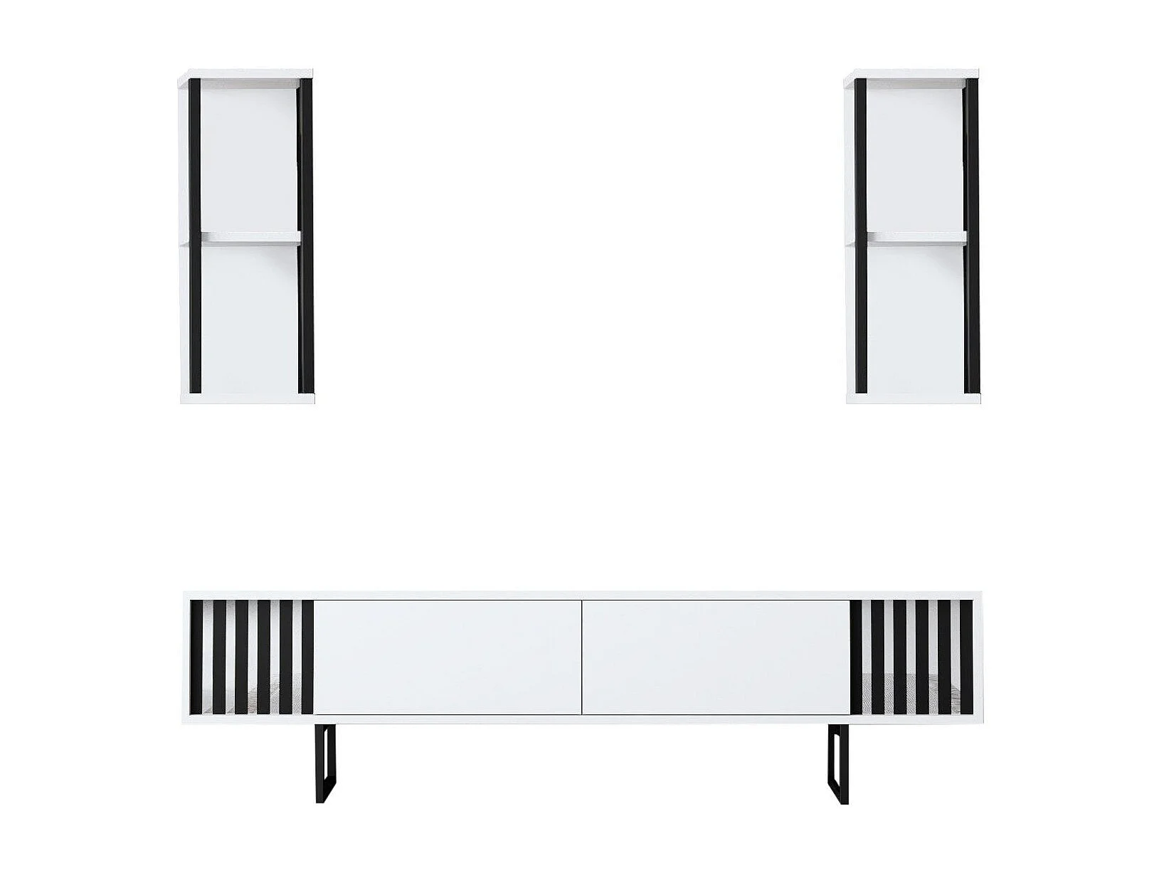 Conjunto de salón Kailua Z105, Negro|Blanco, Partes separadas|Con mesa de TV, 180x30cm