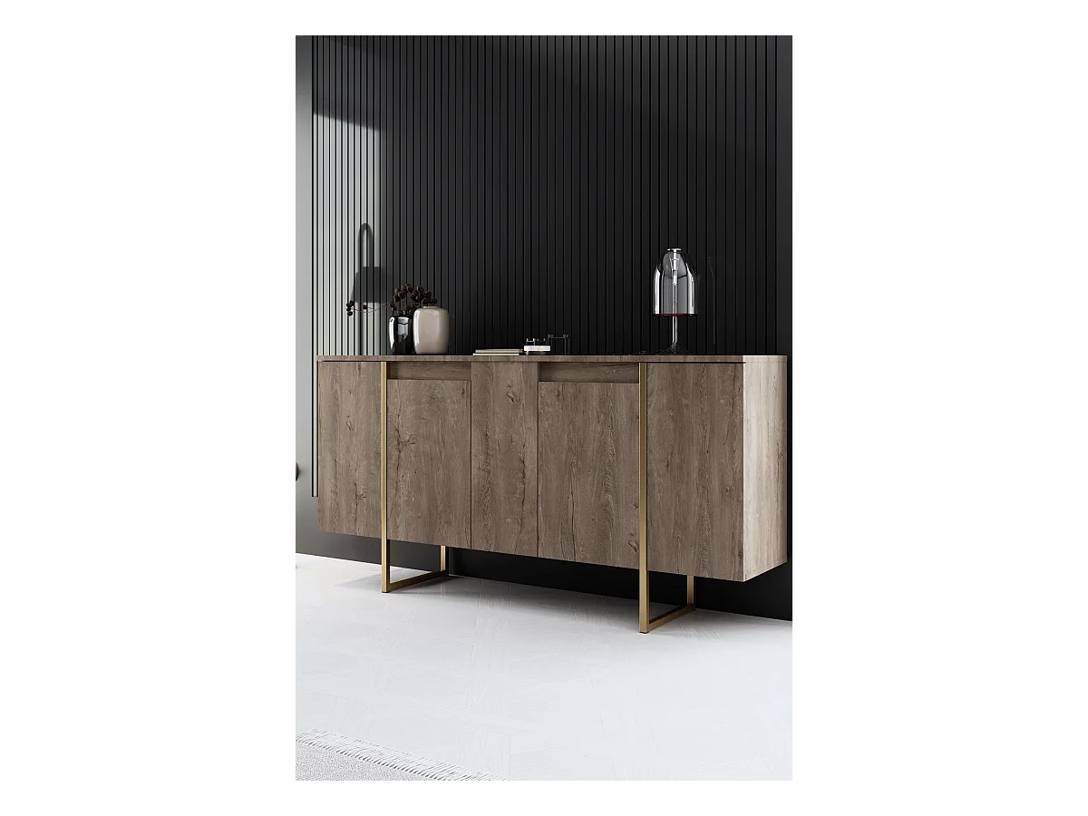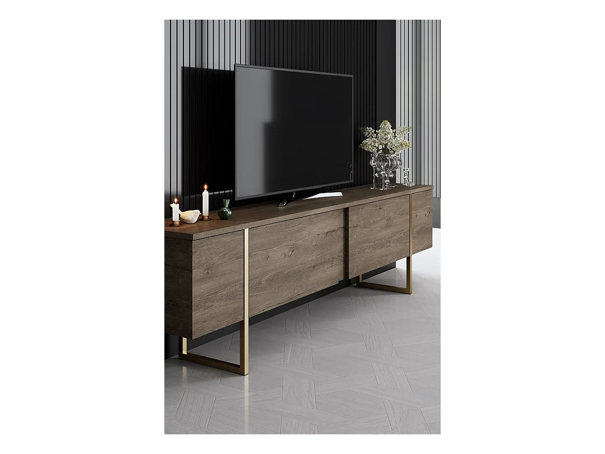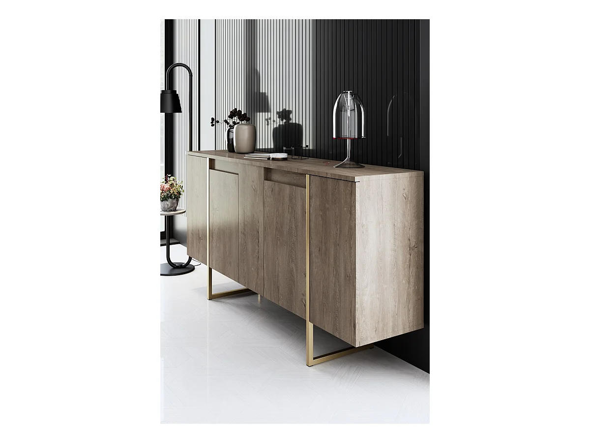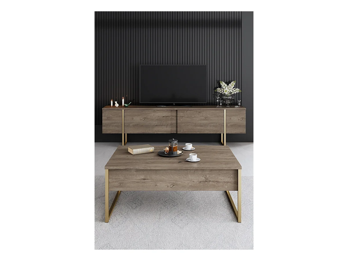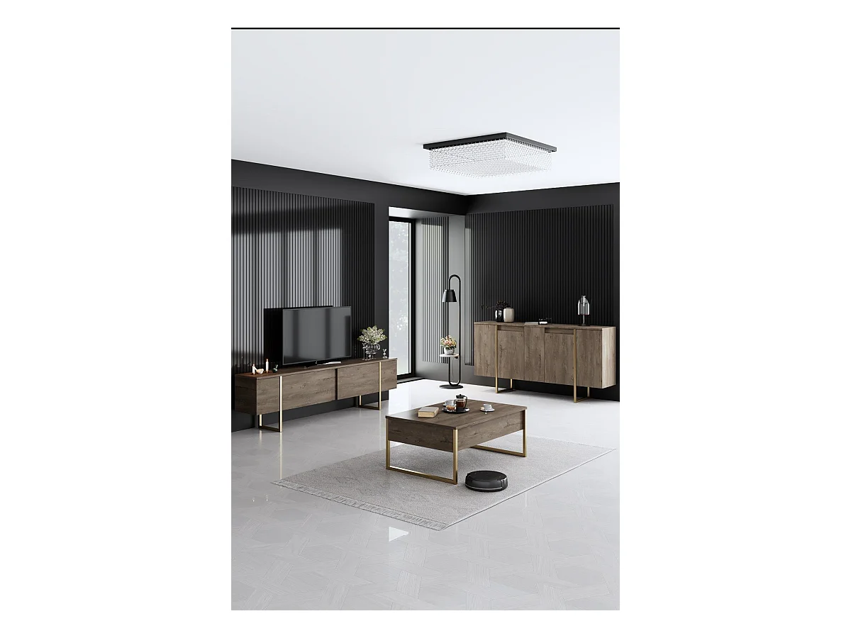 Conjunto de muebles para sala: Mueble para TV de 200 cm, mesa de centro, aparador, roble, colección MONDO.