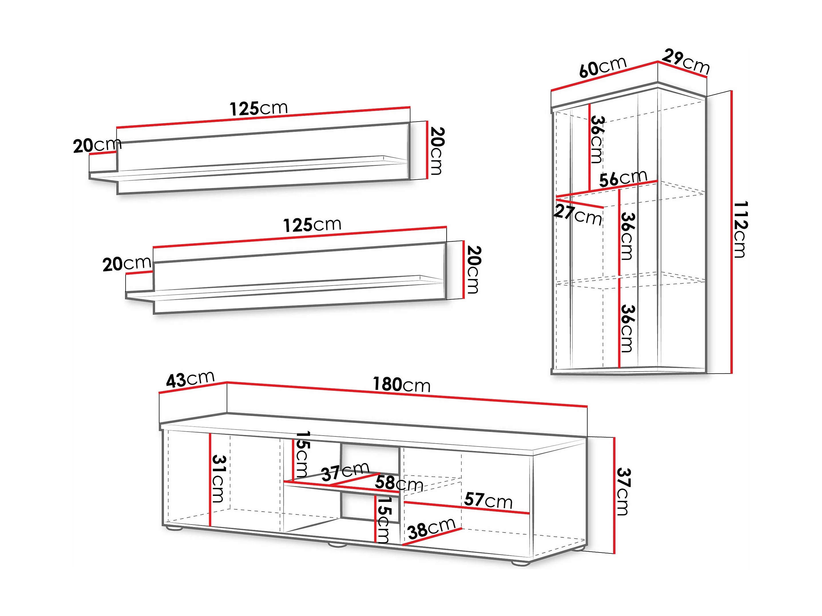 Claire-Anne-Élise Muebles de TV de pared con LED 5 pzas madera ingeniería blanco