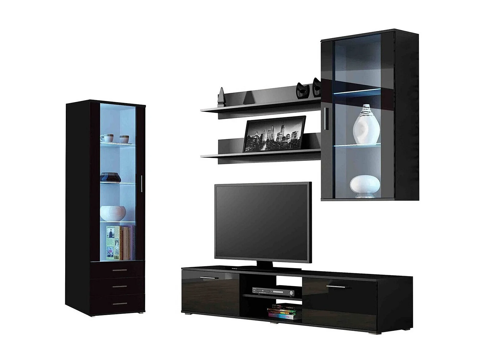Coolgreany Muebles TV pared con LED 7 pzas madera ingeniería gris hormigón