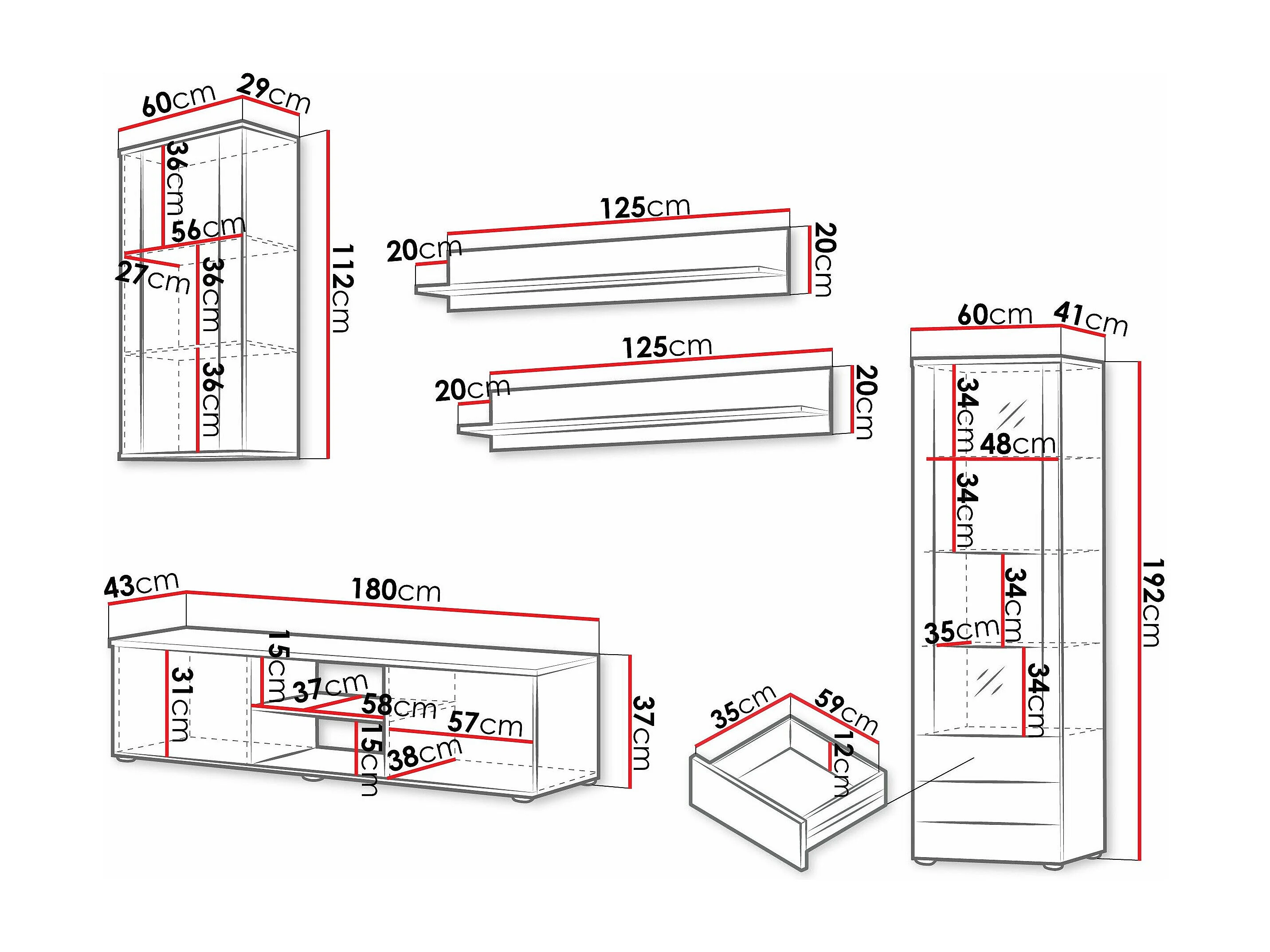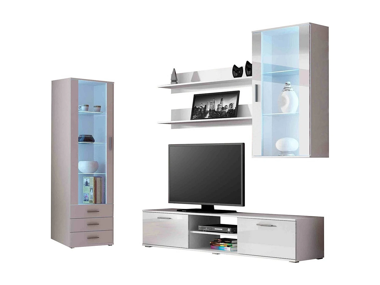 Claire-Anne-Élise Muebles de TV de pared con LED 5 pzas madera ingeniería blanco