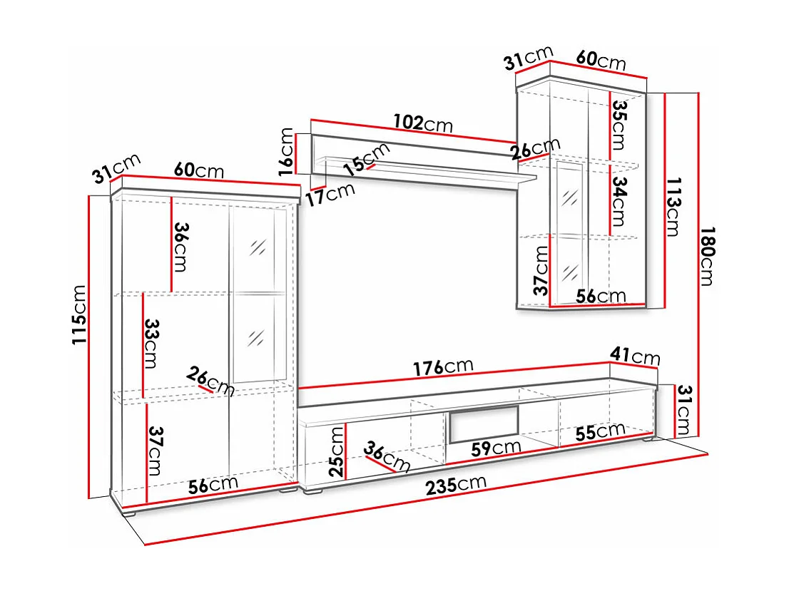 Juego de muebles de salón 5 piezas con iluminación LED blanco