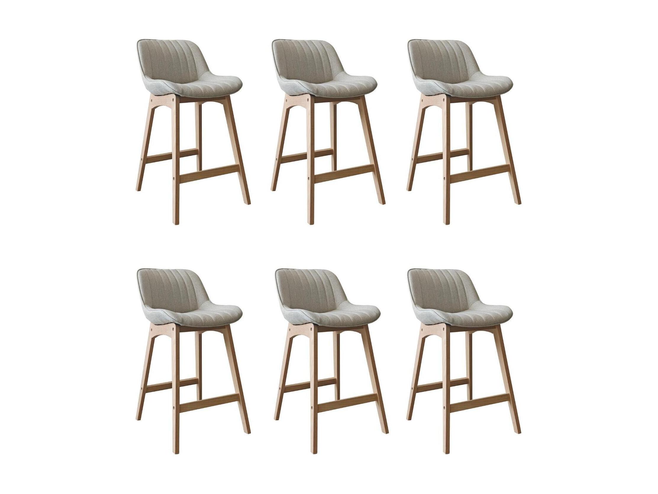 Lote de 6 Taburetes Teok Tela - Gris claro