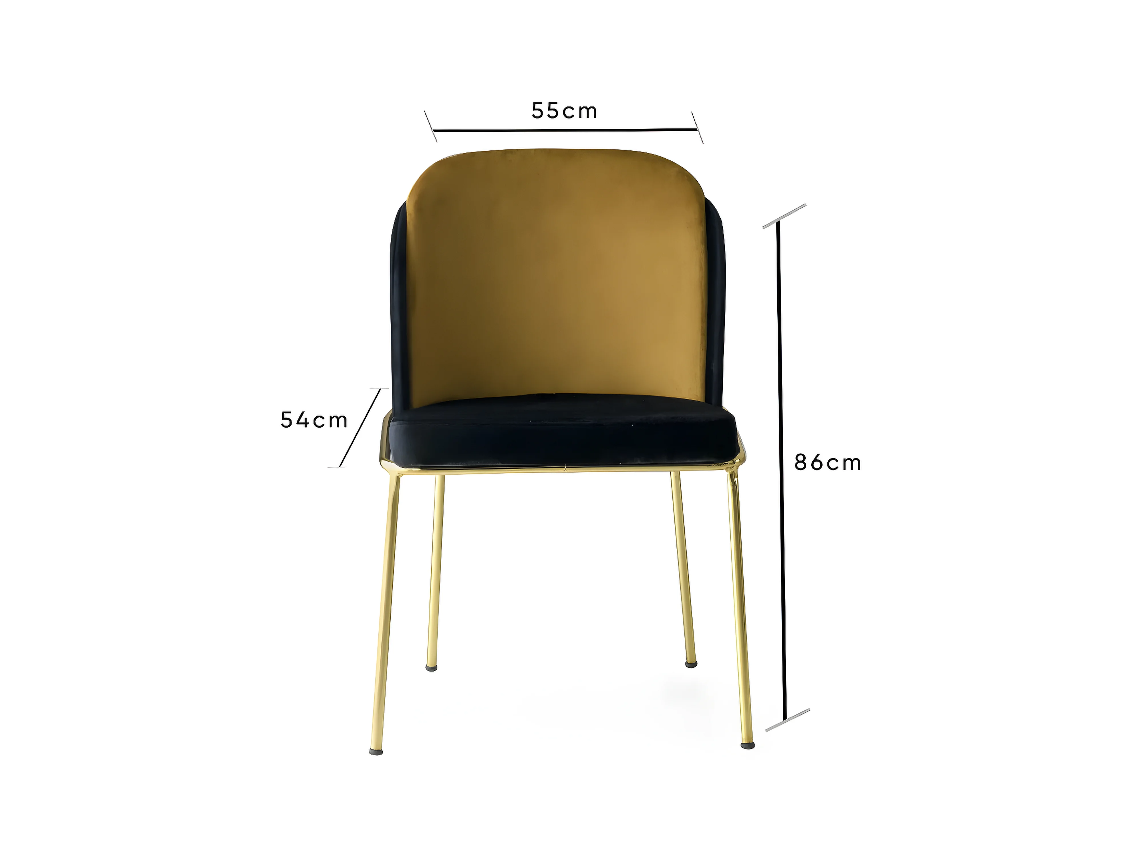 Conjunto de sillas Kailua 1649, Negro|Dorado, 86x54x55cm, Tapiz, Metálico