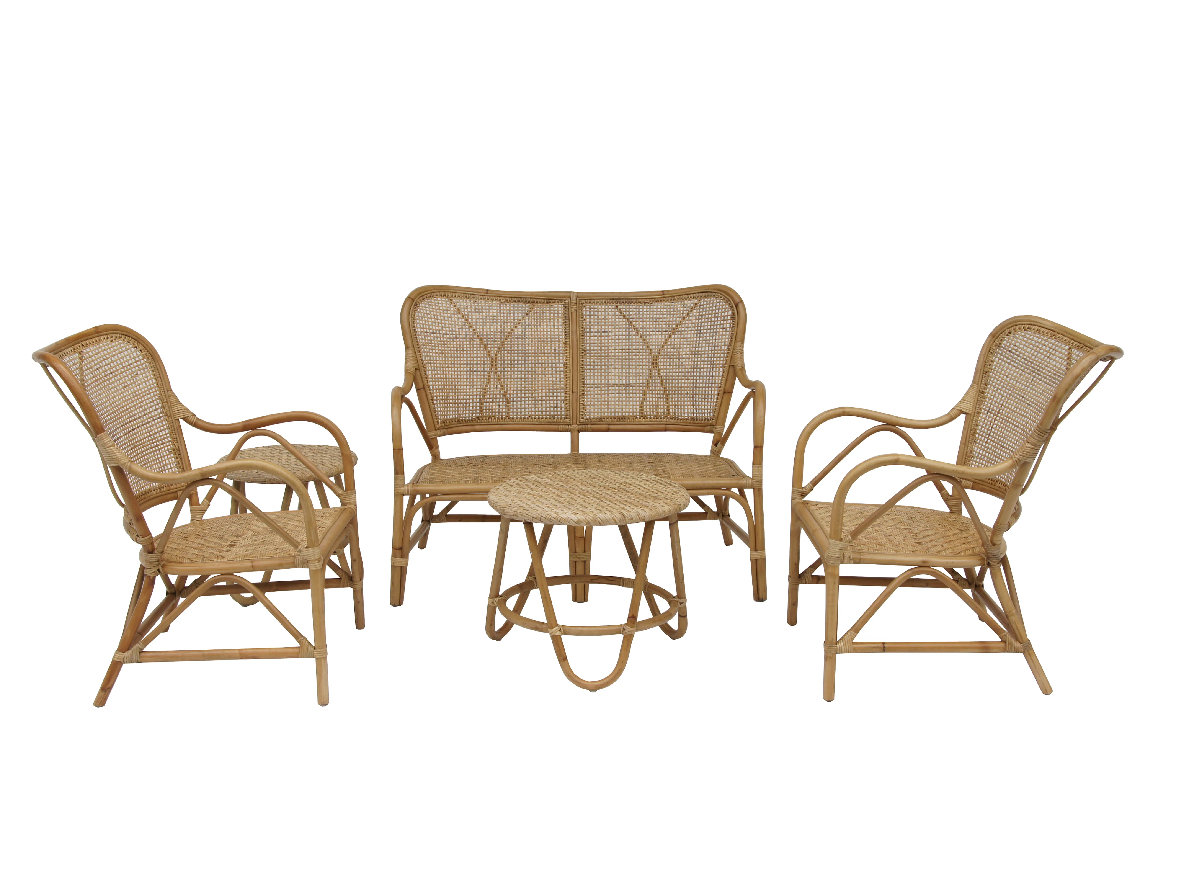Conjunto de Sofá, 2 Sillas y 2 Mesas Auxiliares para Jardín 4 Personas Chillvert Parma 108x72x85 cm Ratán Natural y Mimbre