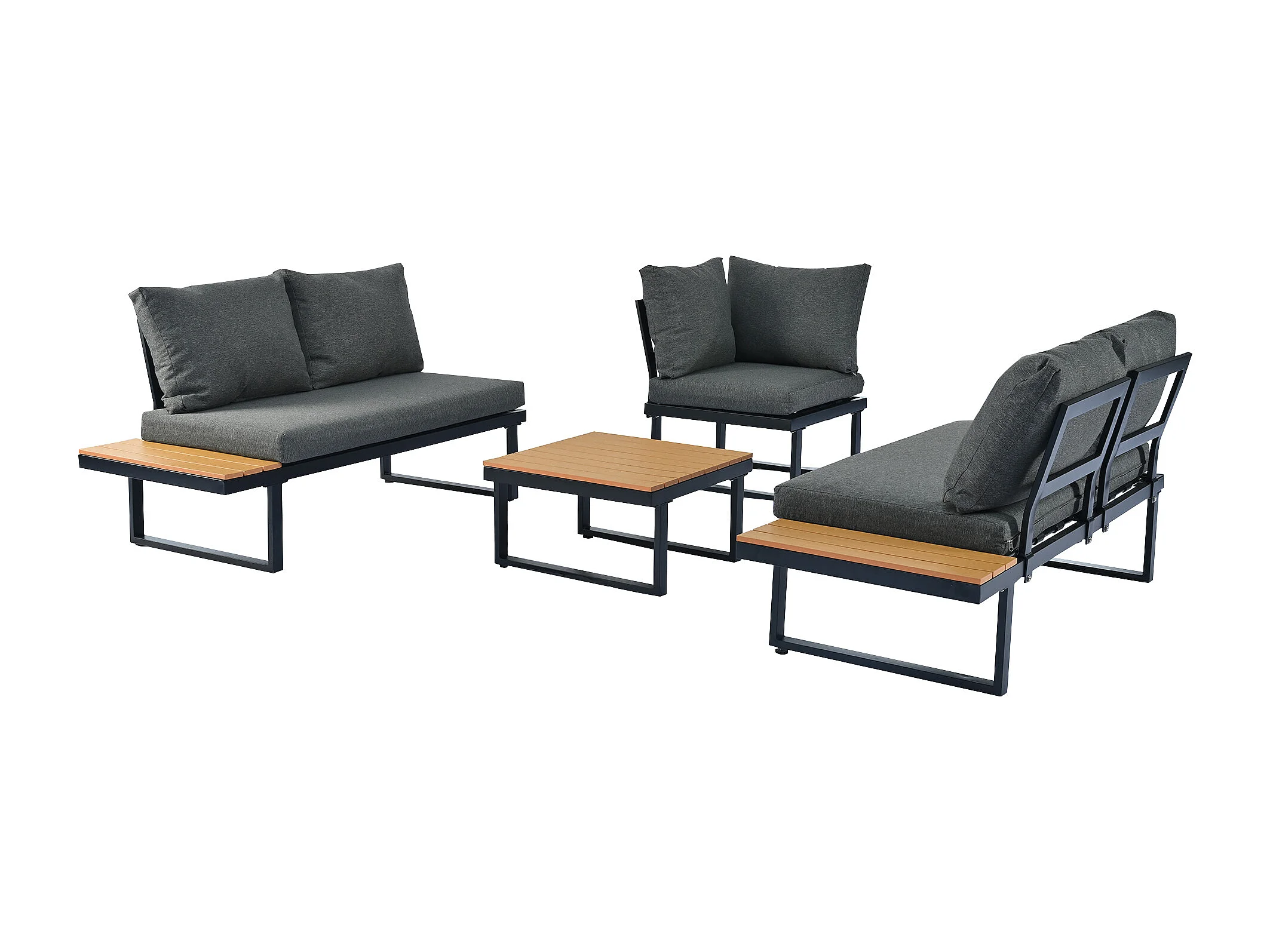 Conjunto de sillón reclinable de jardín, posición esquinera, chaise longue ajustable (5 niveles de ajuste, máx. 55°), con mesa de centro, gris + negro