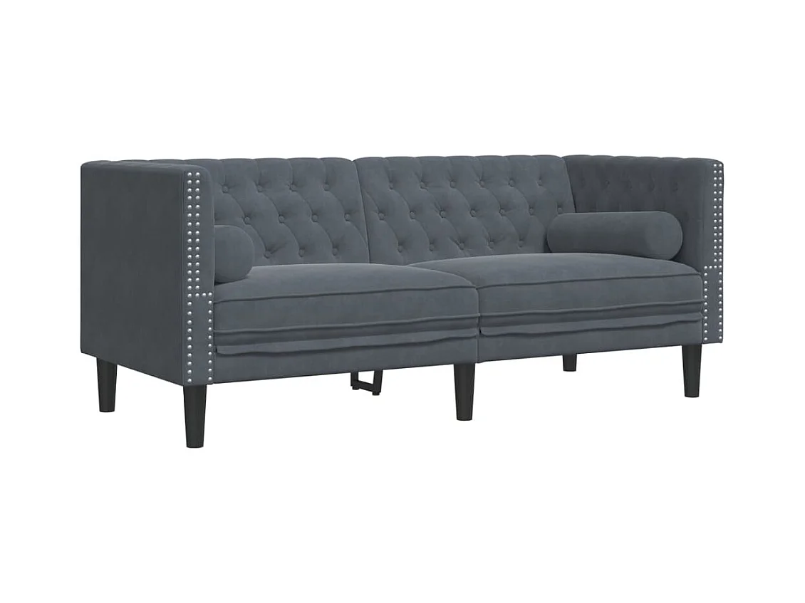 Conjunto de sofá Chesterfield de 3 piezas y cojín en gris oscuro