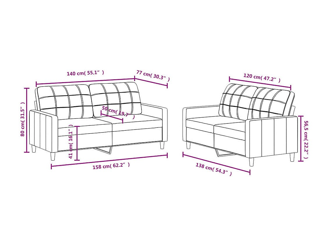Conjunto de sofá de 2 piezas con cojines de tela color rojo burdeos