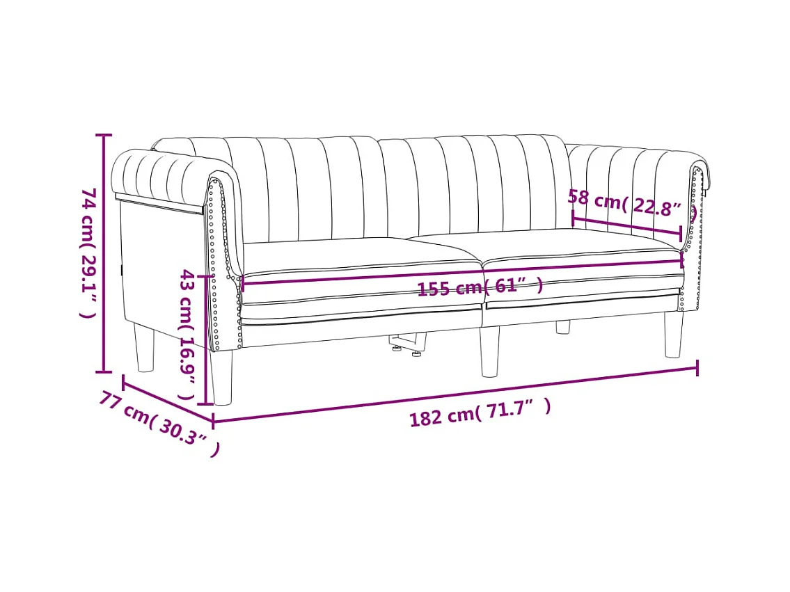 Sofá 2 plazas Gris 120 cm Piel sintética