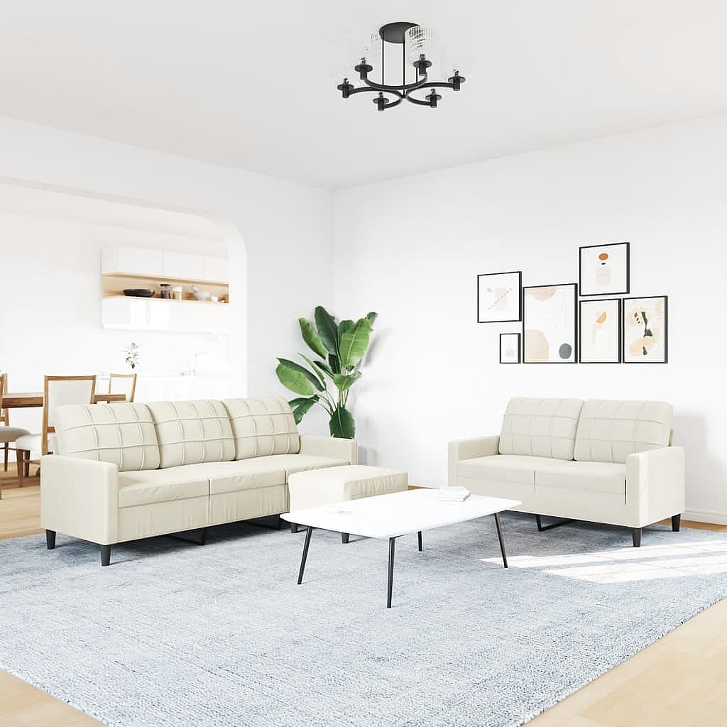 Conjunto de sofá de 3 piezas con cojines Tela Crema