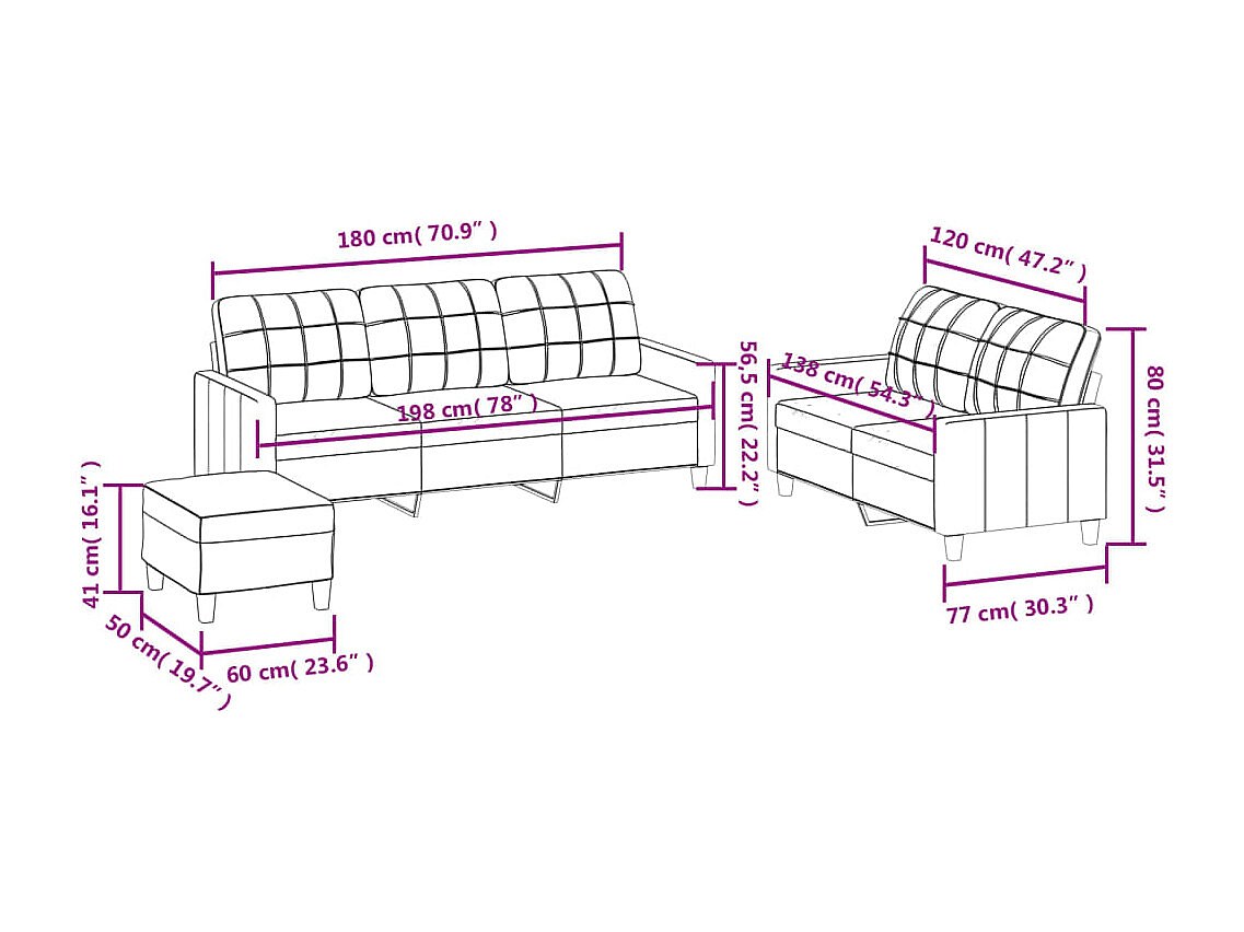 Conjunto de sofá de 3 piezas con cojines en piel sintética color capuchino