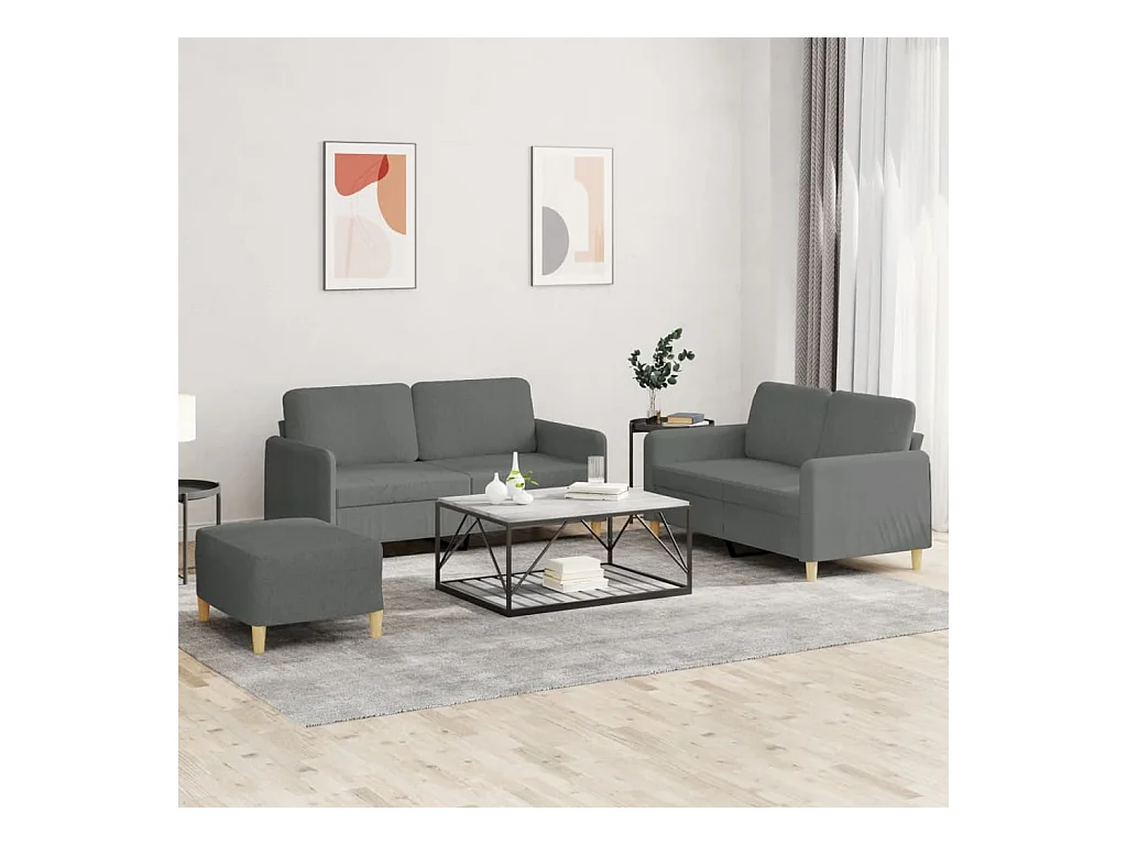Conjunto de sofá de 3 piezas con cojines de tela gris oscuro