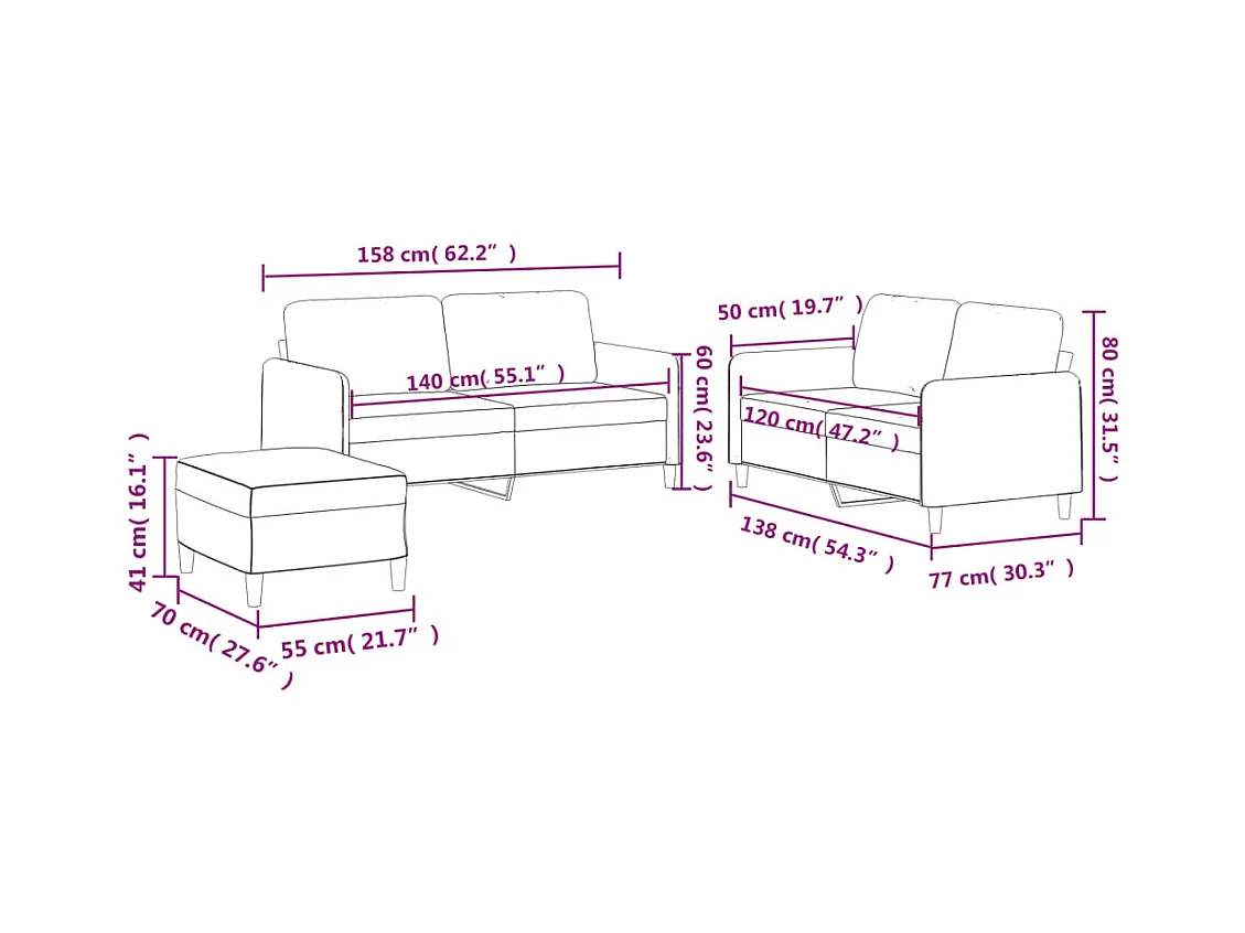 Conjunto de sofá de 3 piezas con cojines Terciopelo Gris Oscuro