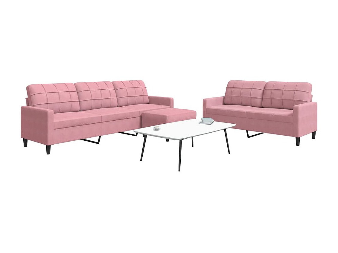 Conjunto de sofá de 3 piezas con cojines, terciopelo rosa