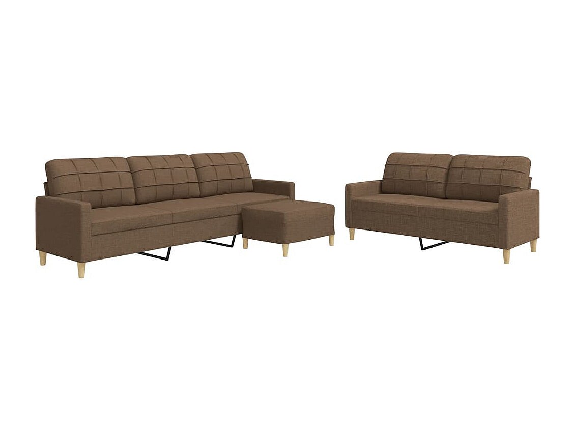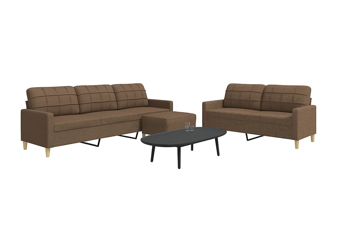 Conjunto de sofá de 3 piezas con reposapiés de tela marrón