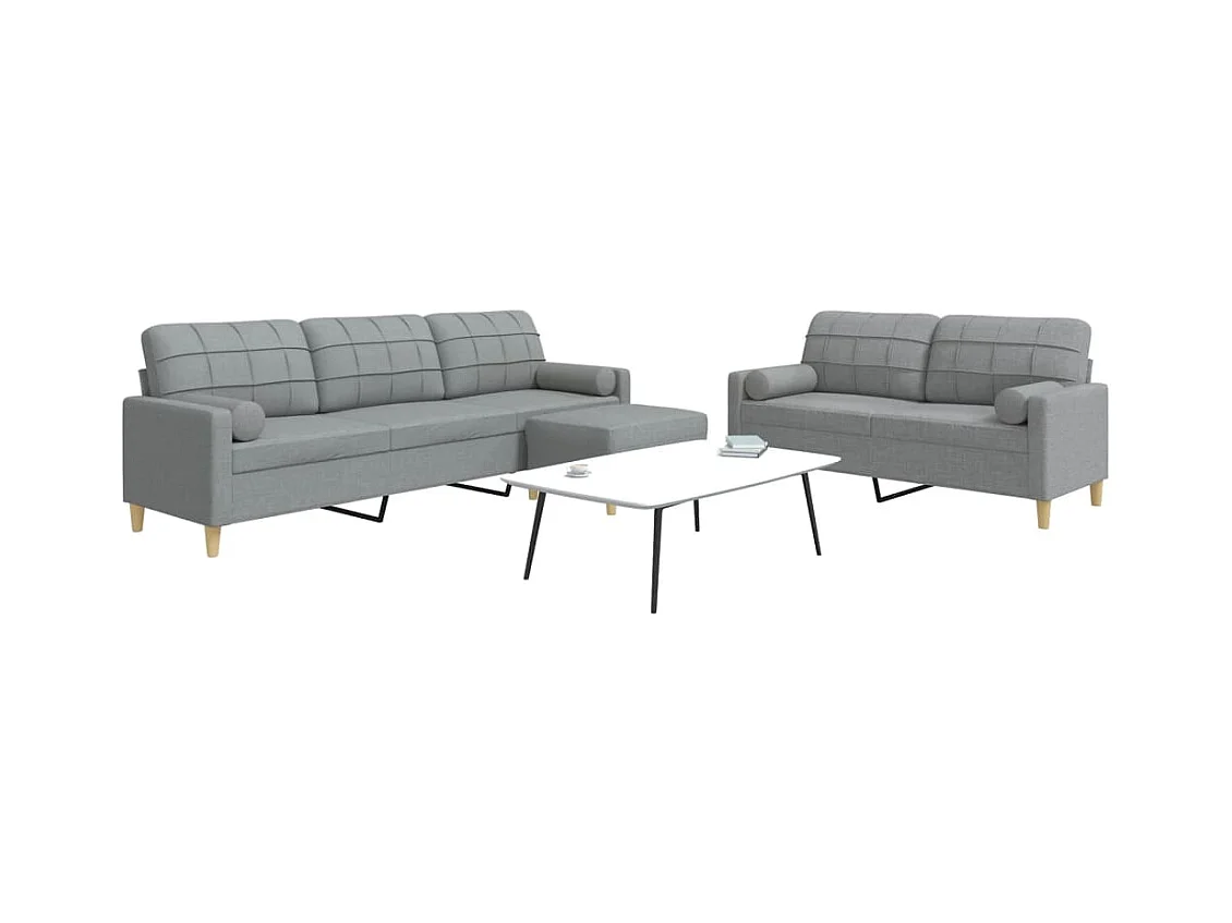 Conjunto de sofá de 3 piezas con reposapiés de tela gris claro