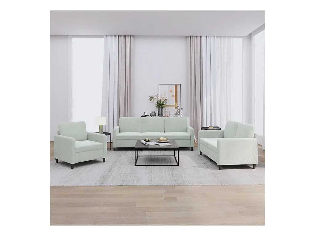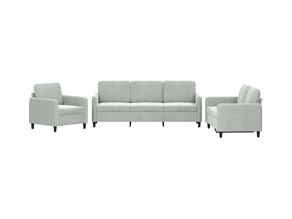 Conjunto de sofá de 3 piezas de terciopelo gris claro