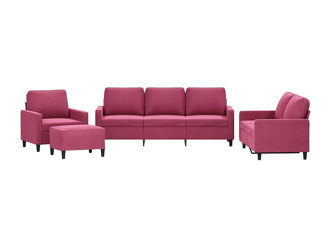 Conjunto de sofá de 4 piezas con cojines Terciopelo rojo burdeos
