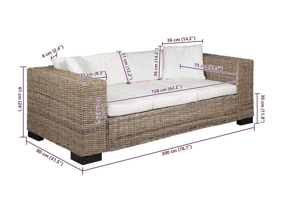 Conjunto de sofá de 8 piezas y 3 plazas de ratán auténtico