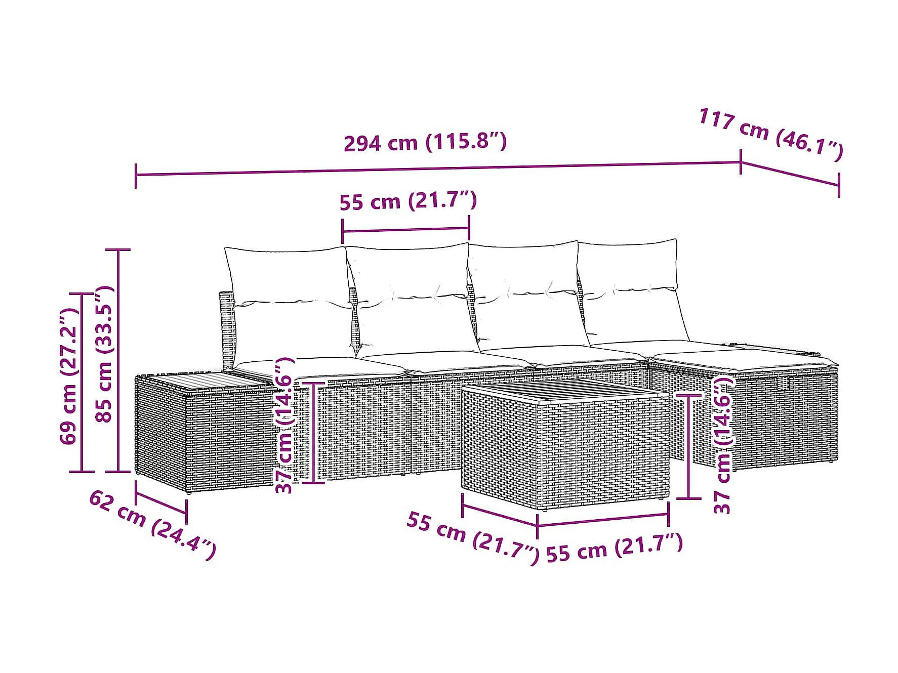 Conjunto de sofá de jardín con almohada 6 pcs Negro Poliratán