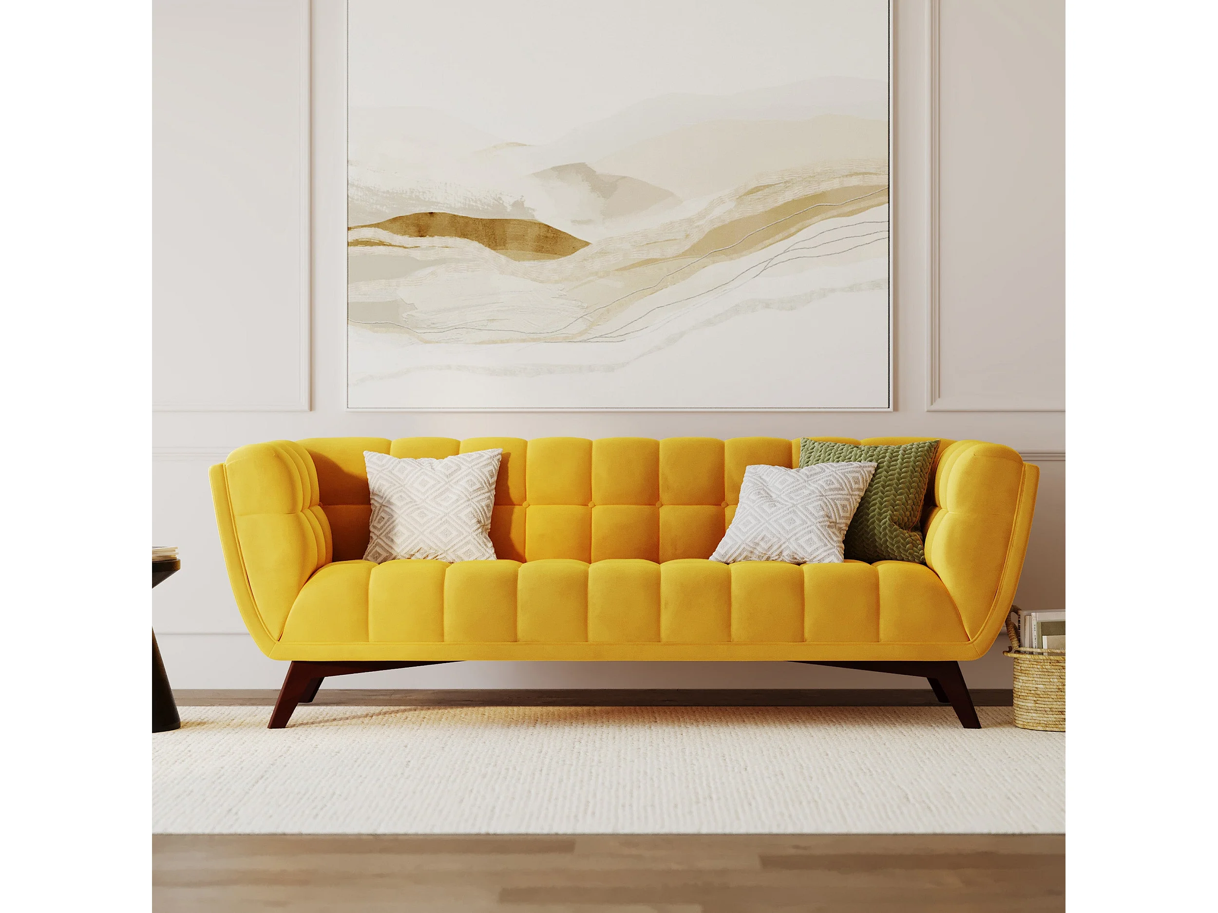 Conjunto de sofá y sillón de terciopelo amarillo para 4 personas - Mona