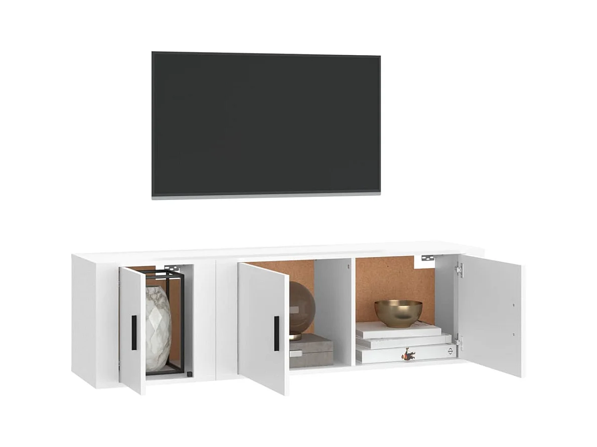 Conjunto de soporte para TV de 3 piezas de madera de ingeniería blanca