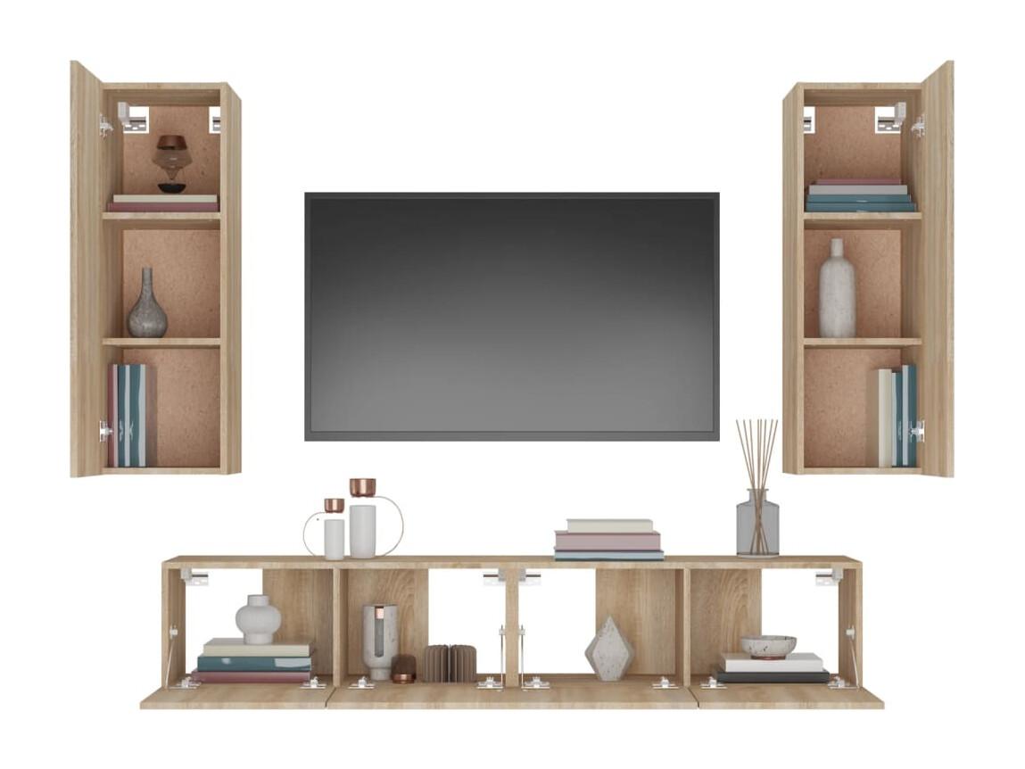 Conjunto de soporte para TV de 4 piezas de madera de ingeniería de roble Sonoma