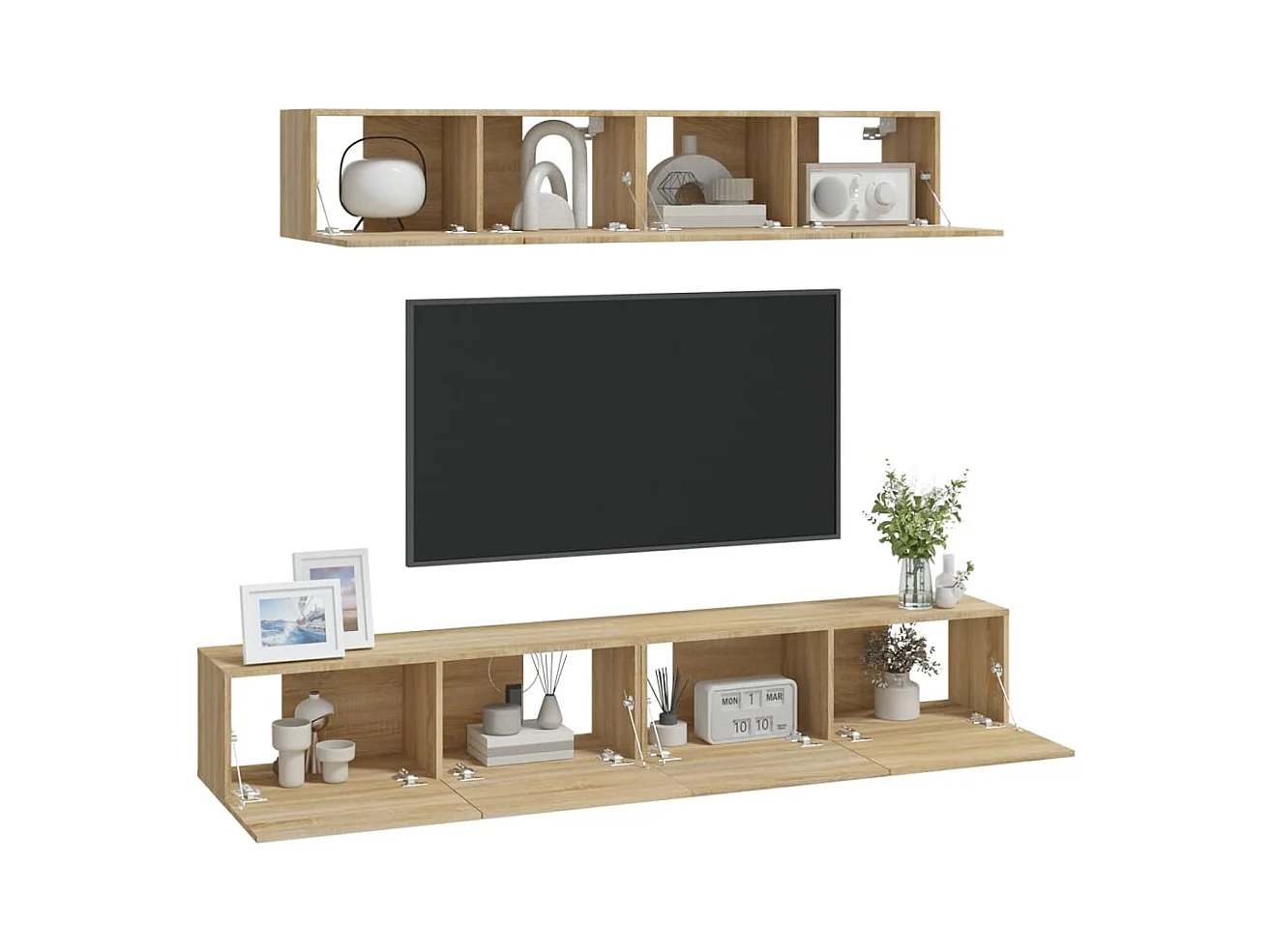 Conjunto de soporte para TV de 4 piezas de madera de ingeniería de roble Sonoma