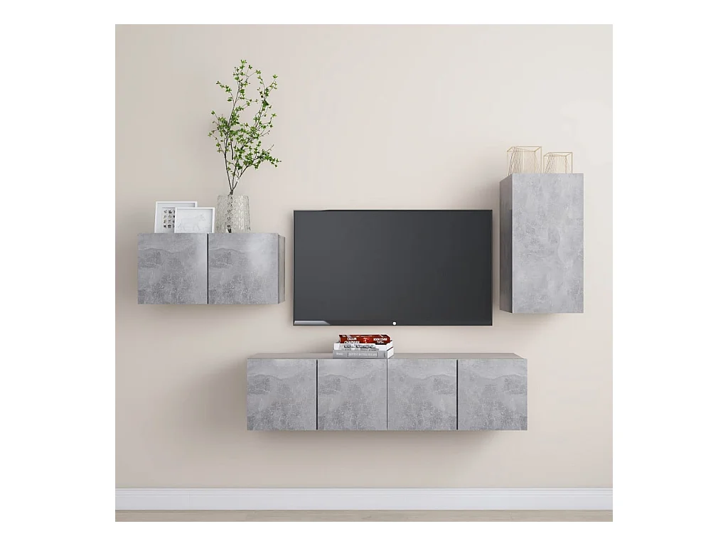 Conjunto de soporte para TV de 4 piezas de madera de ingeniería gris hormigón